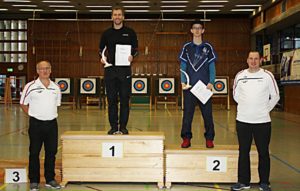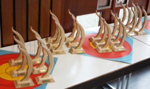 Bei der offiziellen Siegerehrung gab es dieses Jahr Pokale aus Holz in Form eines Recurve-Bogens. Dieser außergewöhnliche Pokal wurde gesponsert durch eine örtliche Schreinerei. Dafür ein herzliches Dankeschön. Zum Schluss bedankten sich die Vorsitzenden, Johannes Langner und Andreas Güntert, bei allen Beteiligten sowie bei Raimund Fautz und bei den Schützen, welche so zahlreich erschienen sind. Außerdem ein besonderer Dank an die vielen Helfer, die im Hintergrund arbeiteten, den Sponsoren, sowie Hartmut Bruch und Thomas Leopold für die ärztliche Versorgung. Ohne sie wäre es nicht möglich, so ein Turnier über zwei Tage auszutragen.