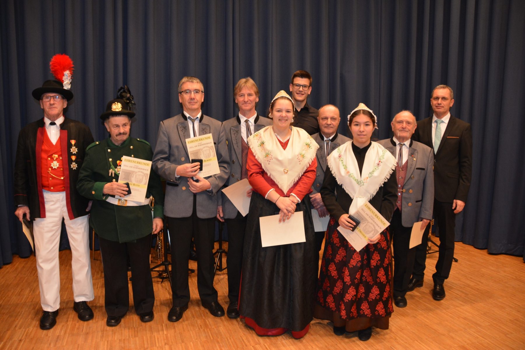 Seit 50 Jahren sind Ludwig Vollmer in der Bürgerwehr Unterharmersbach und Josef Roth in der Bürgerwehr Zell a. H. aktiv. Vor 50 Jahren gehörten Helmut Lehmann, Michael Dupke, Bernd Borho und Ludwig Vollmer zu den Gründungsmitgliedern des Musikvereins Unterentersbach. Alle vier sind auch heute noch aktive Musiker.