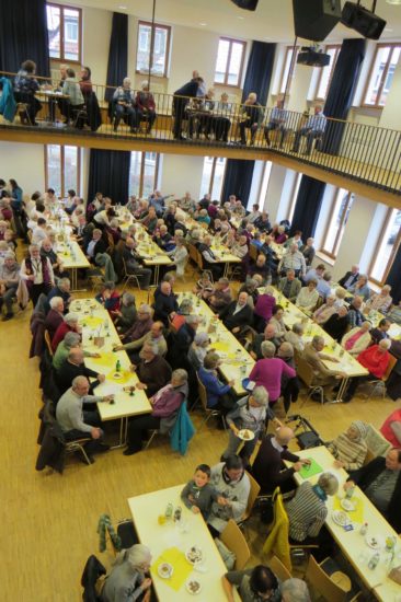 Zum zehnten Mal wurde der »Tag der Sozialstation« am dritten Sonntag im Januar angeboten. Die Besucher kamen so zahlreich, dass sogar auf der Empore des Kulturzentrums bewirtet werden musste. Michael Horst hielt die Begrüßungsrede.