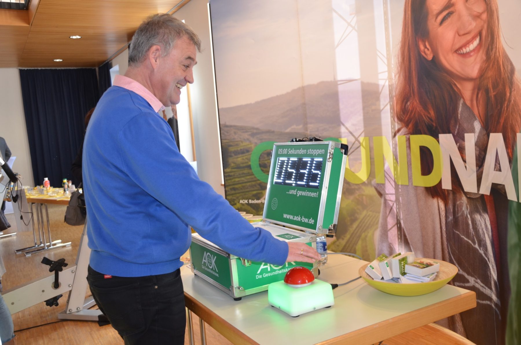 Am Gesundheitstag vergangenen Mittwoch war die AOK mit verschiedenen Angeboten dabei: Mittels eines BioAgin-Fahrrads durften Besucher ihr biologisches Alter bestimmen. Wie gut die eigene Reaktionszeit ist, war an einem Buzzer-Test zu erfahren. Für die Entspannung von Beinen, Armen und Schultern waren Mobisit-Massagegeräte aufgestellt. Themen in praktischen Kursen waren Übungen, die dem Rücken gut tun oder die Achtsamkeit stärken.