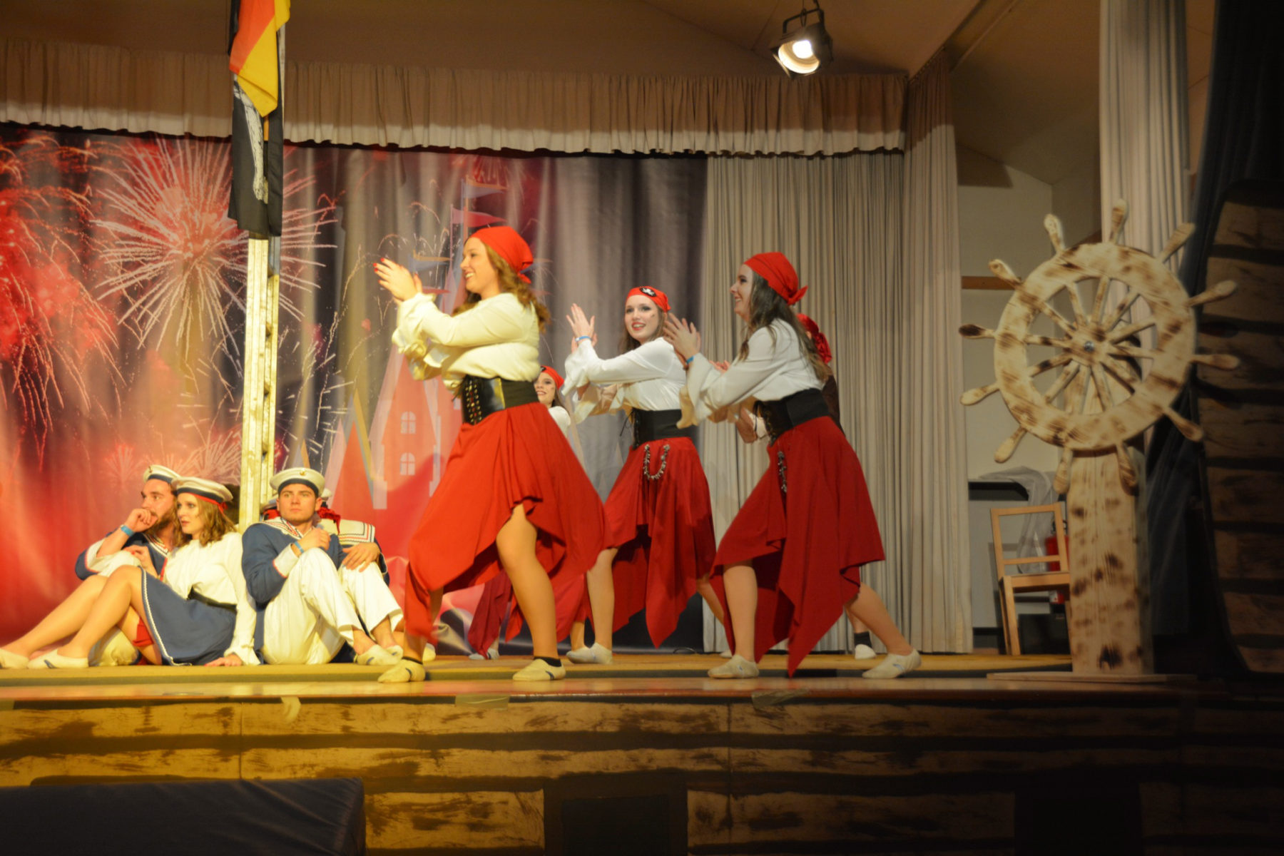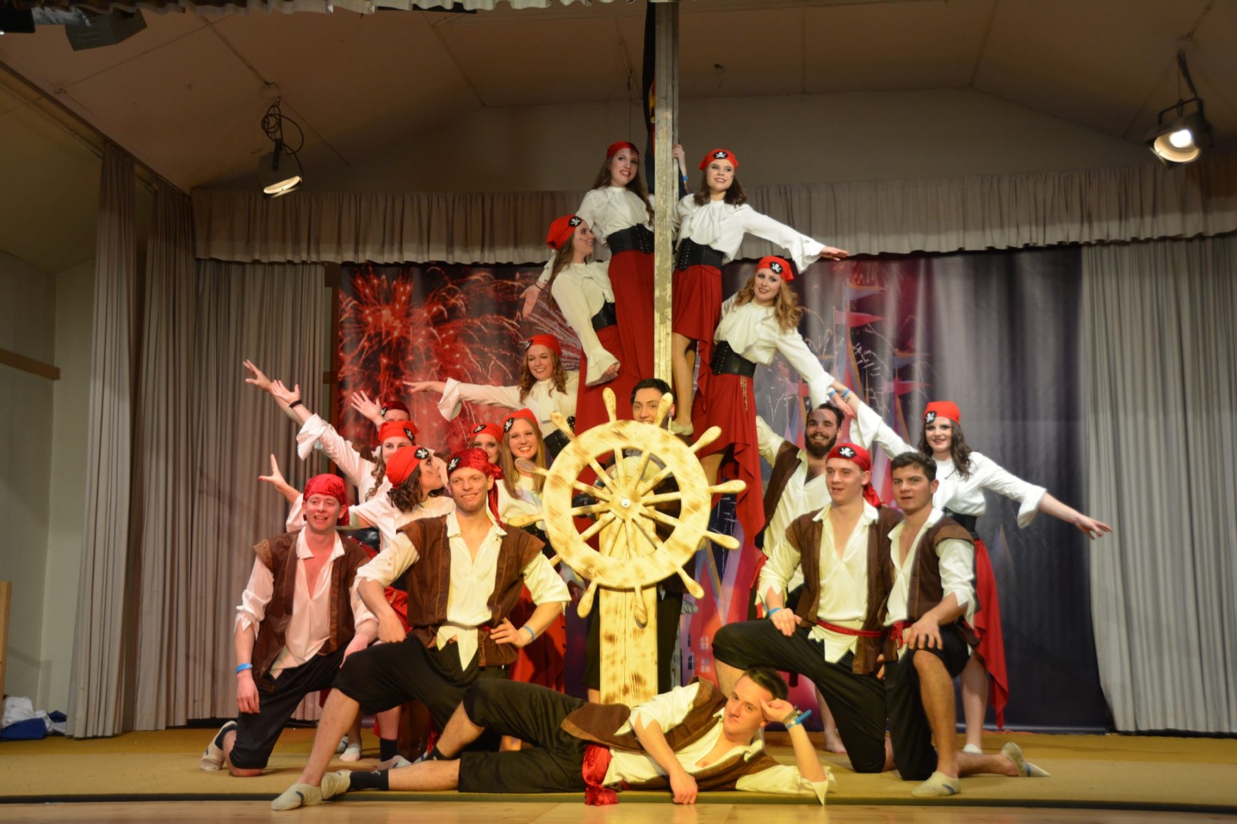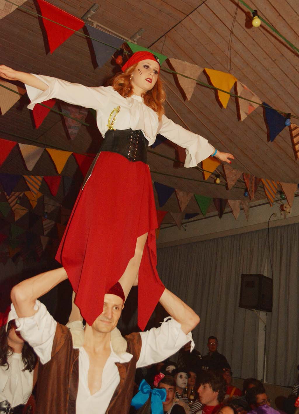 Ganz schön turbulent ging es auf dem gediegenen Kreuzfahrtschiff zu, das von einer wilden Piratenhorde geentert wurde. Für die »Drunken Sailer« war der Widerstand zwecklos und auch die Passagiere im Saal ließen sich im Sturm von der »Ultimate Dance-Crew deluxe« erobern. Die Stimmungswogen rollten Welle um Welle über das Turnhallendeck.