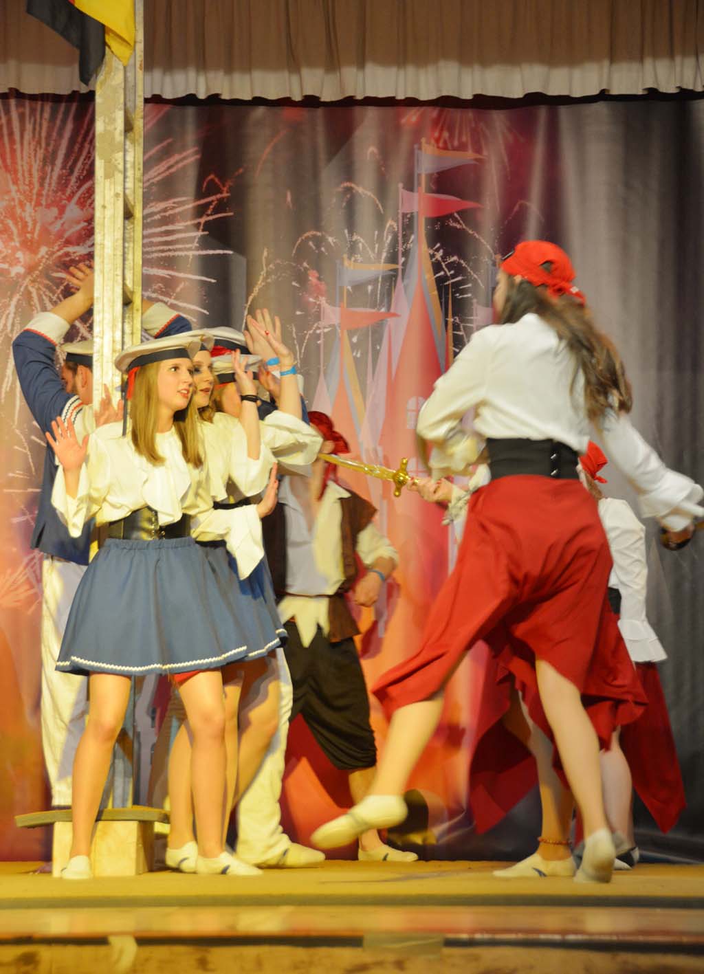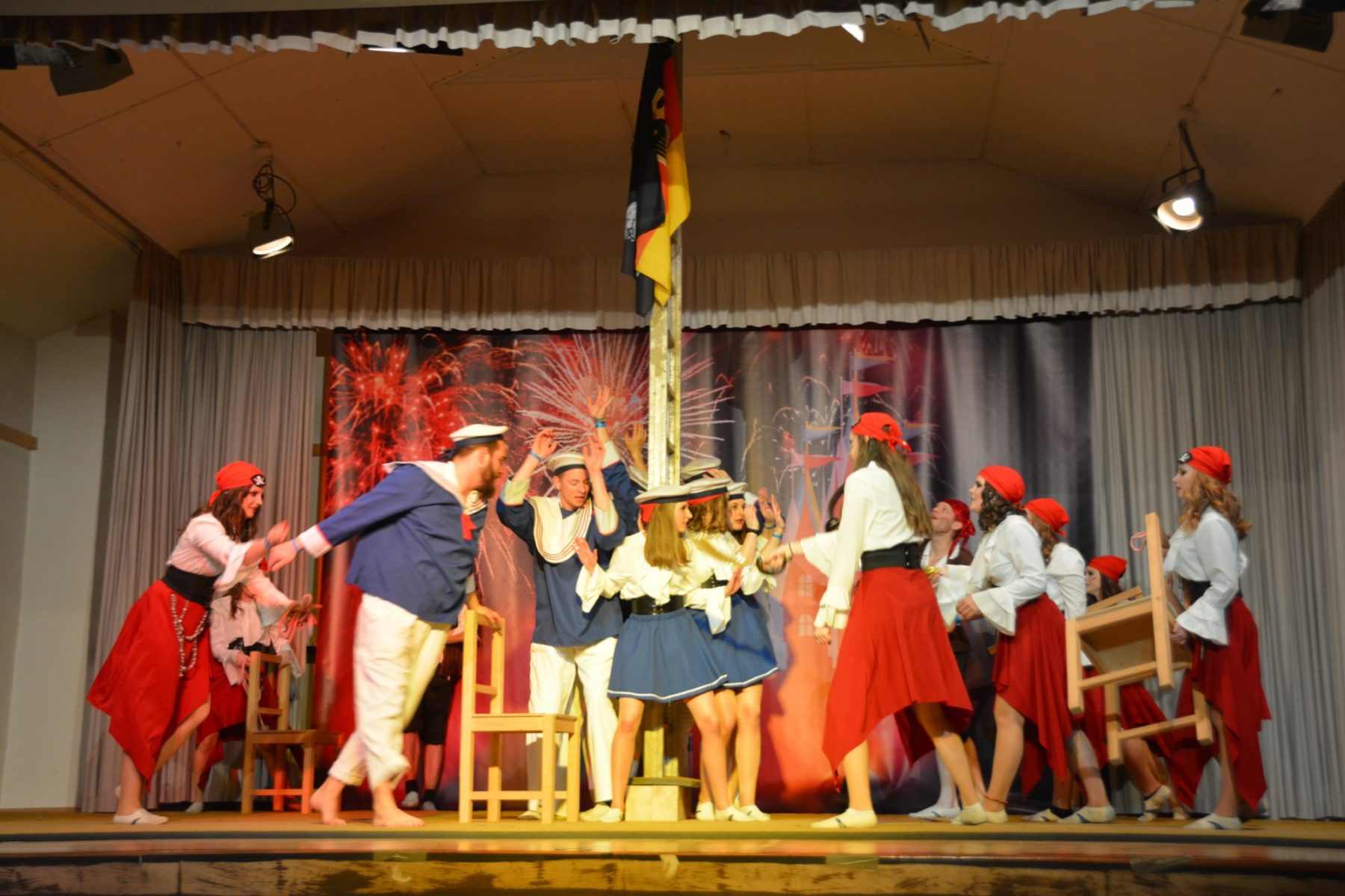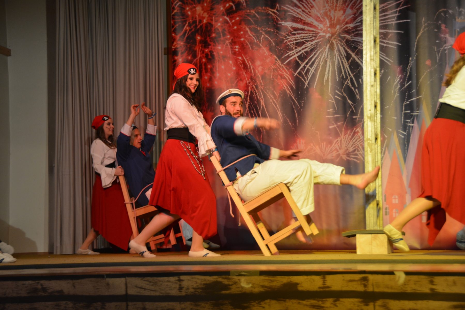 Ganz schön turbulent ging es auf dem gediegenen Kreuzfahrtschiff zu, das von einer wilden Piratenhorde geentert wurde. Für die »Drunken Sailer« war der Widerstand zwecklos und auch die Passagiere im Saal ließen sich im Sturm von der »Ultimate Dance-Crew deluxe« erobern. Die Stimmungswogen rollten Welle um Welle über das Turnhallendeck.