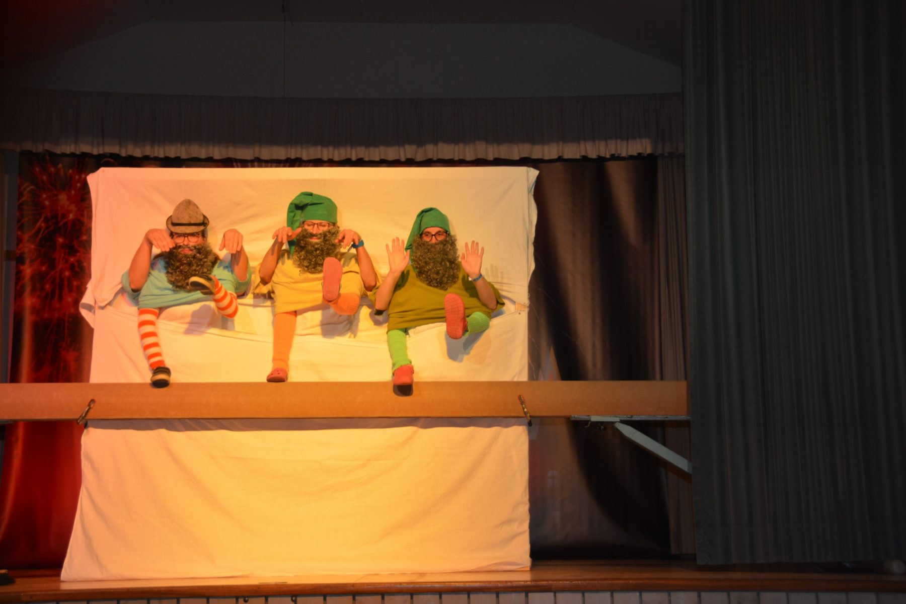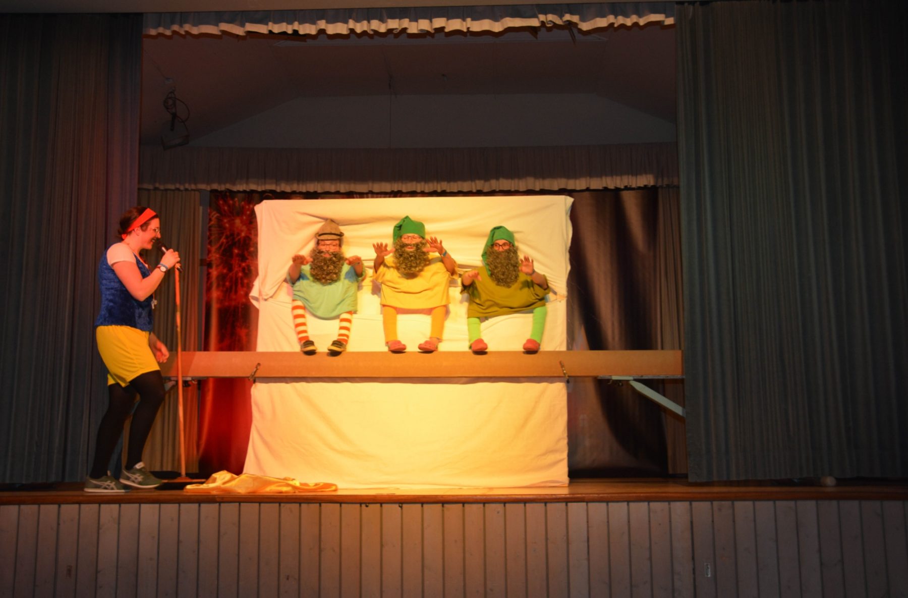 Derweil hatte das hübsche Schneewittchen ihr Hausfrauendasein endgültig satt. »Die drei Zwerge lassen sich nur bedienen und werden immer fetter«, beklagte sie. Aber da geht noch was, war sich Schneewittchen sicher und animierte die Zwergenschar, die diese mit allerlei möglichen und unmöglichen Verrenkungen umsetzte.