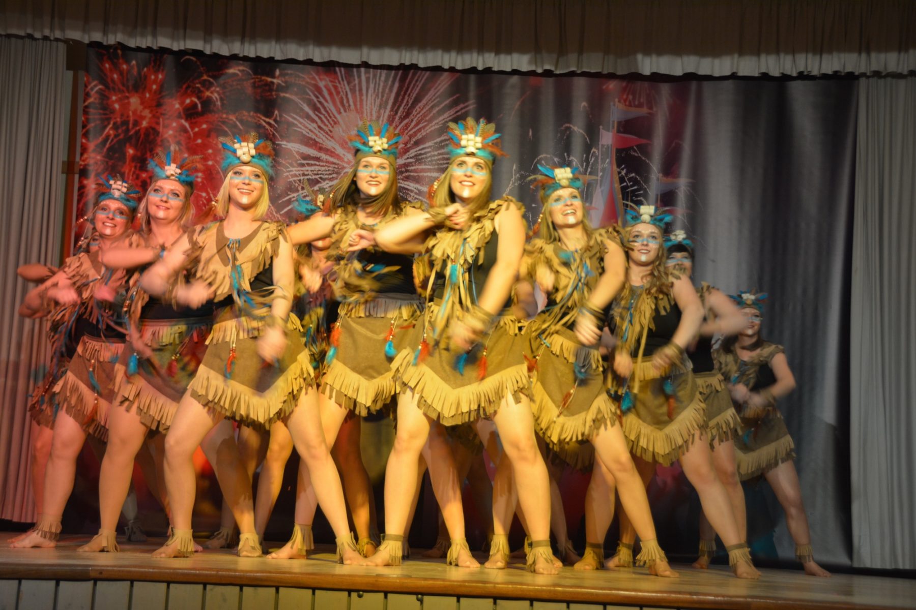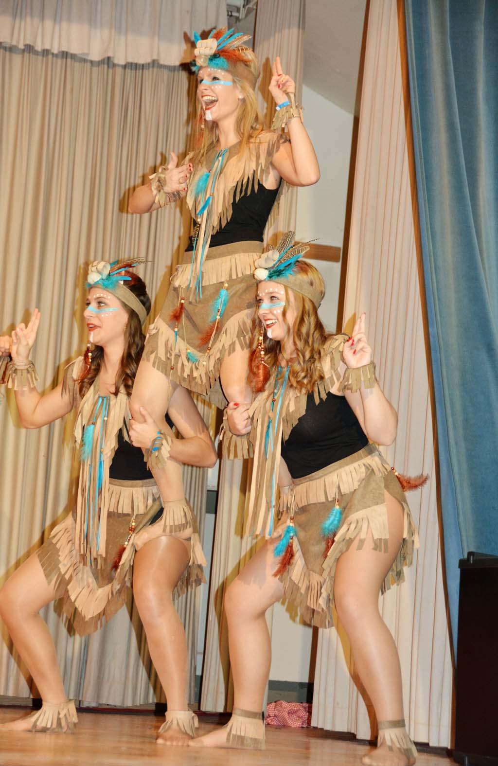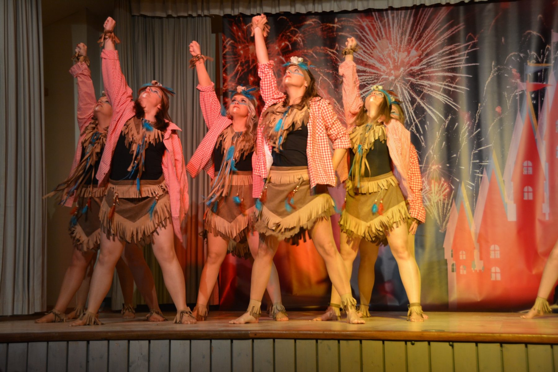 Die wilde Bande der Turnmänner konnte nur noch durch den Showtanz der atemberaubend schönen Charisma-Tänzerinnen übertroffen werden. Als strahlende Indianerinnen Pocahontas kämpften sie mit packender Choreographie von Lena Baumann und Hannah Baumann gegen die englischen Entdecker und stürmten in die Herzen der jubelnden Zuschauer.