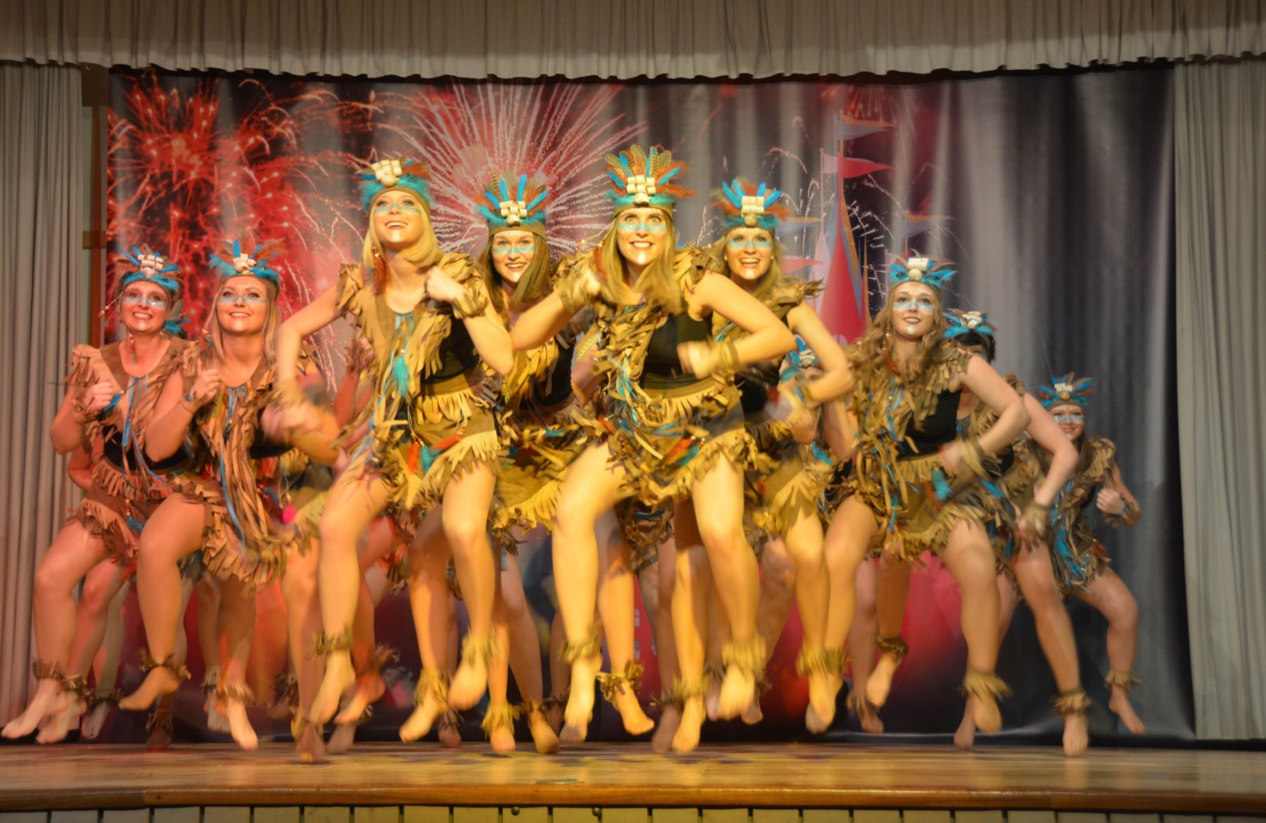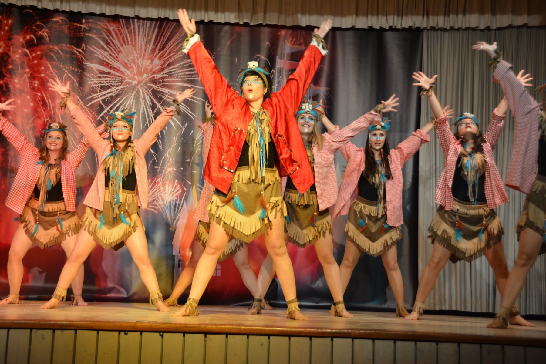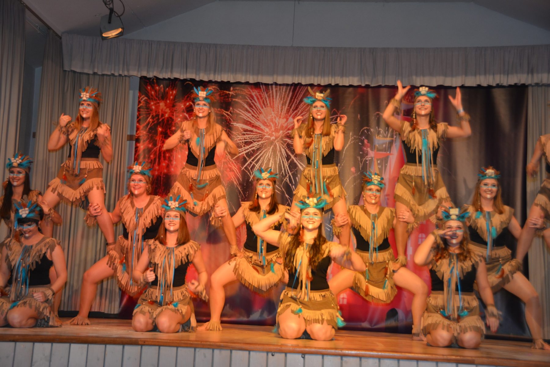 Die wilde Bande der Turnmänner konnte nur noch durch den Showtanz der atemberaubend schönen Charisma-Tänzerinnen übertroffen werden. Als strahlende Indianerinnen Pocahontas kämpften sie mit packender Choreographie von Lena Baumann und Hannah Baumann gegen die englischen Entdecker und stürmten in die Herzen der jubelnden Zuschauer.