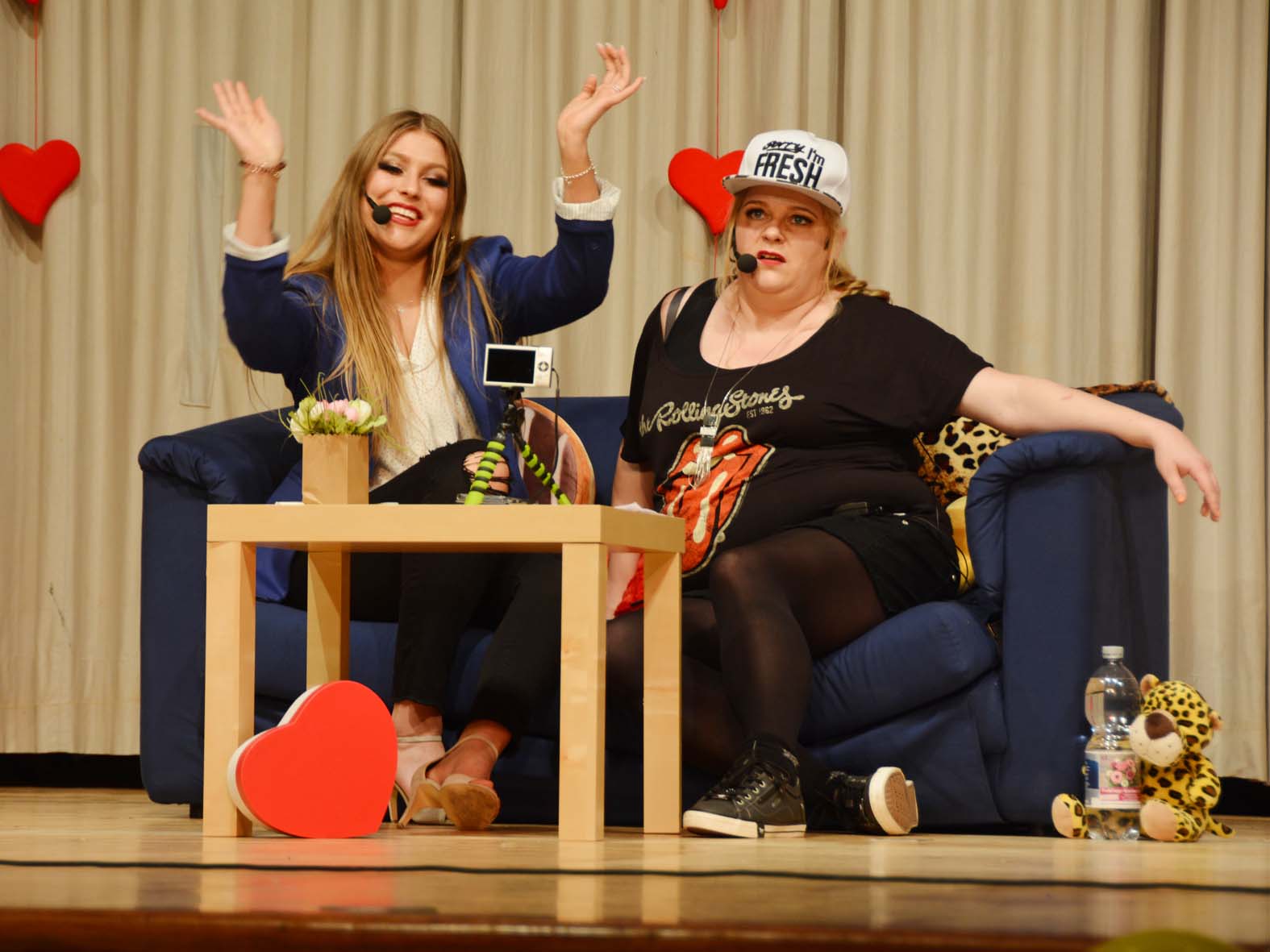 Das Programm eröffneten die Lohgass-Kinder mit einem farbenfrohen Tanz auf Party-Musik. Nach lautem Beifall gab es natürlich eine Zugabe für die Kids. Anschließend kamen Katja und Robina auf die Bühne und drehten ihr Youtube-Video »Katja und Robina erklären die Welt«. »Ich schwör« war der Spruch der zwei »Teenies« und beide erklärten auf ihre ganz eigene Art wichtige Themen wie Feminismus und Donald Trump. »Ach! Der Mann mit dem Toupet«, erinnerte sich Robina. Sie machten sich mit ihren Gags über die heutigen Teenager lustig und berichten über zwei neue Influencer aus Zell »Ahhaaaaa« Mika und Jasmin. Das Geschwister-Duo startete eine Flachwitz-Challenge und versuchte sich gegenseitig zum Lachen zu bringen. Bei »Was sagt der große Stift zum kleinen Stift? Wachsmalstift!« mussten beide aber doch grinsen.