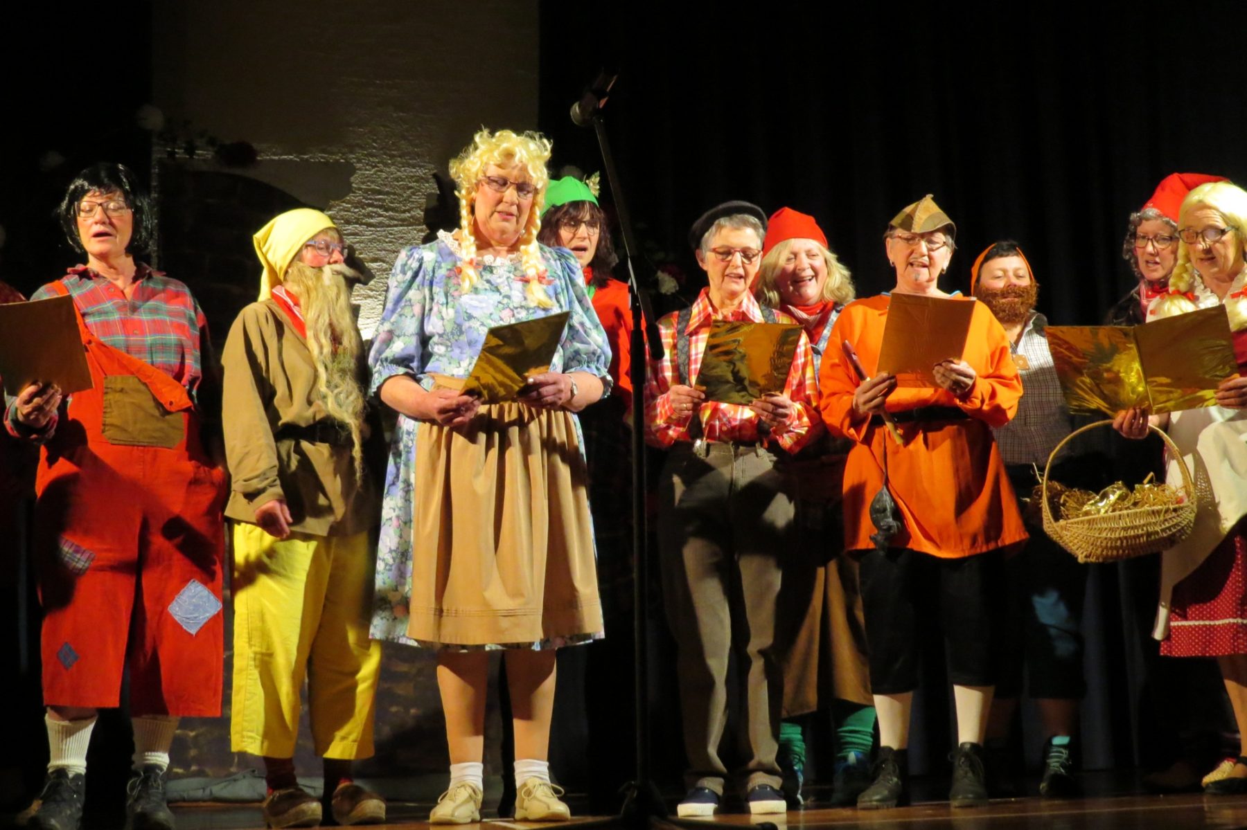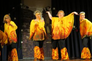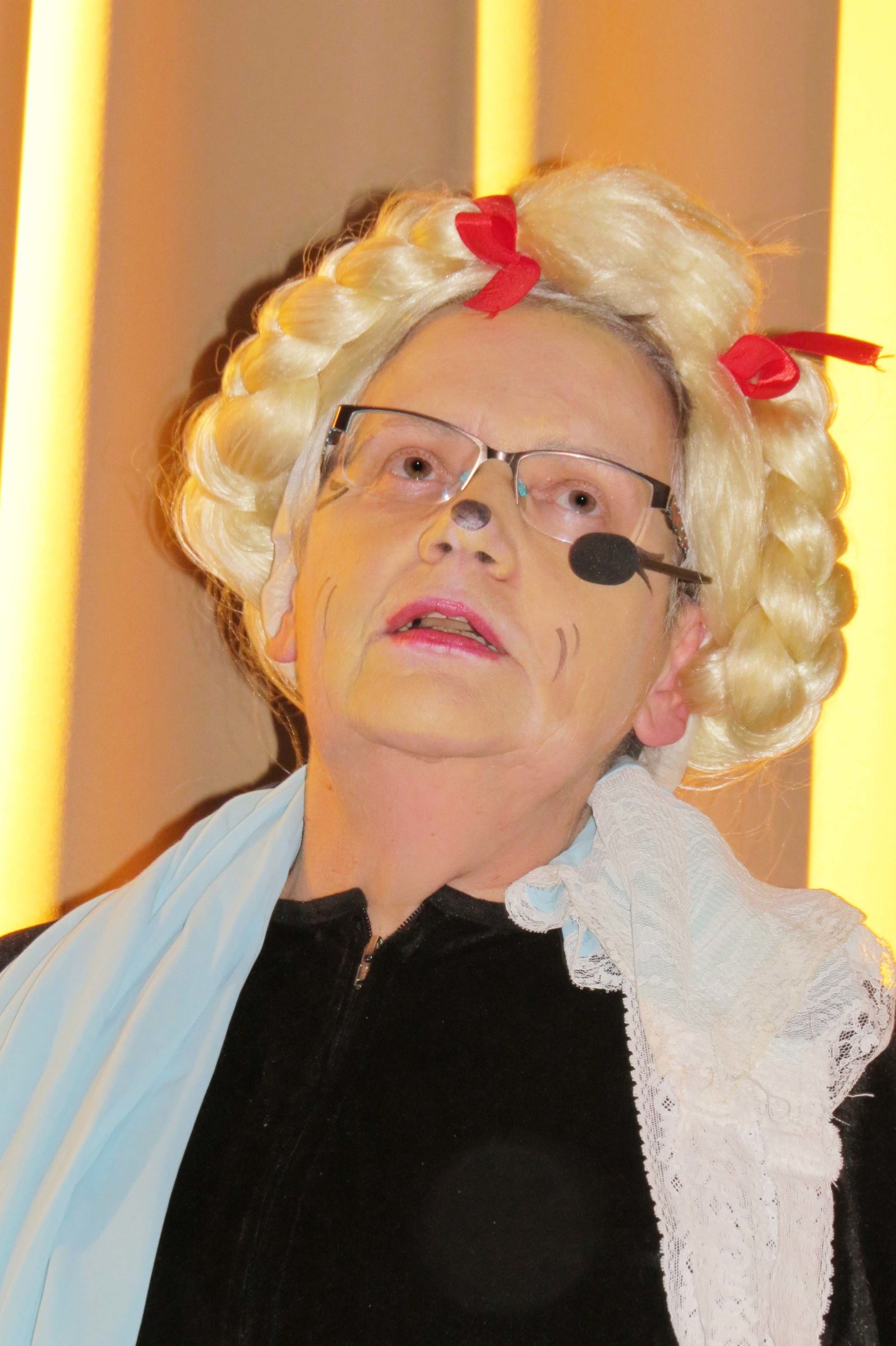 Die Gruppe »Zusammengewürfelte« präsentierte eine skurrile Märchenstunde. Rotkäppchen erhält eine WhatsApp von Großmutter und bringt ihr Döner und Red Bull. Rapunzel wirft ihr Haar aus dem Turm und ruft Felix zur Rettung herbei. Schneewittchen sucht einen Mann auf parship und findet statt dessen sieben Zwerge. Frau Holle wirft Schnee in Tüten ins Publikum und Gretel rockt alleine die Bühne. Ein herrlicher Klamauk mit tollen Kostümen, für den die Gruppe viel Beifall erhielt.