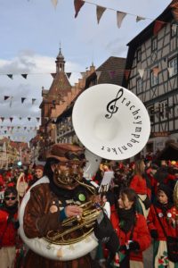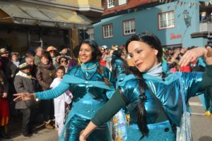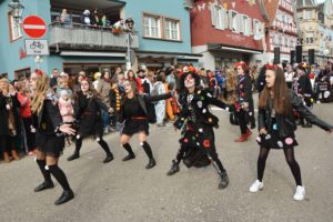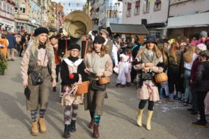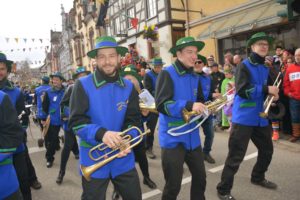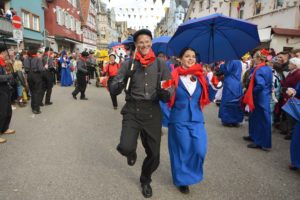 Die Zeit bis zum Eintreffen des Hauptzuges wurden von den Basler Grachsymphonikern mit Bravour überbrückt. Die Guggemusik ist etwas vom Feinsten, sowohl was den Sound als auch das Outfit betrifft. Der Takt folgt einem Schweizer Uhrwerk. Zugleich servieren die Bläser schöne Melodien. Diesmal steckten die 40 Mann in kunstvollen kupferfarbenen Monturen, voran Tambourmajor Florian Kainz im Anzug eines Tiefseetauchers. Die Truppe beglückte die Zeller Fasend bereits zum 12. Mal. Sie wird selbstverständlich auch beim kommenden Basler Morgestraich zum spektakulären Ritual Spektakel beitragen.