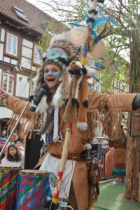 Die Bruchgemeinschaft ließ Indianer-Romantik aufleben. Den Hintergrund bildete die Geschichte von »Pocahontas«, der Tochter eines Häuptlings, die ihren Stamm davon abhielt, die weißen Kolonisten zu skalpieren. Eindruck machten nicht nur die typischen Kleider der Squaws und der prächtige Federschmuck der Indianer, sondern auch der Wagen, der mit einem mächtigen Felsen und einem üppigen Baum den Eindruck einer imposanten Landschaft weckte.