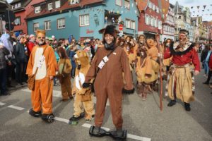 »König der Löwen« stand über der Inszenierung der Gemeinschaft »Städtle«. Neben dem Rudel der braun eingekleideten Löwen stachen blau gefiederte Vögel ins Auge. War der Himmel bis dahin noch bedeckt gewesen, tat sich jetzt ein Fenster auf und ließ die Farben erstrahlen. Simba, der König der Löwen, alias Städtle-Ober-Homberle Rolf Herr, konnte mit dem Auftritt seiner Tierschau zufrieden sein.