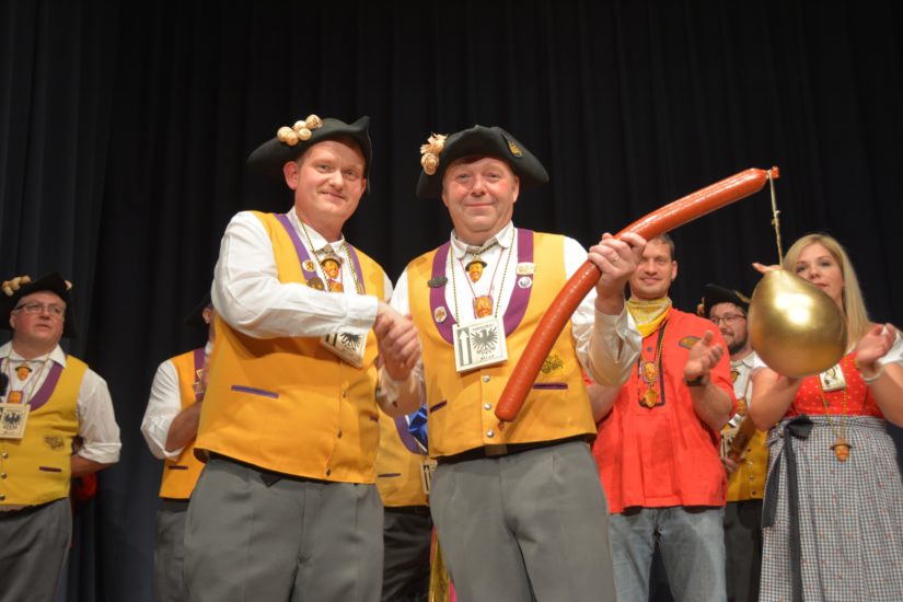 Eine große Ehrung gab es zum Auftakt des Zunftabends 2019: Clemens Halter ist seit 20 Jahren Narrenrat und seit 15 Jahren Zunftmeister der Narrenstadt Zell. Für seine Verdienste durfte er eine goldene Saubloder an der Wurst von der goldenen Sau in Empfang nehmen.
