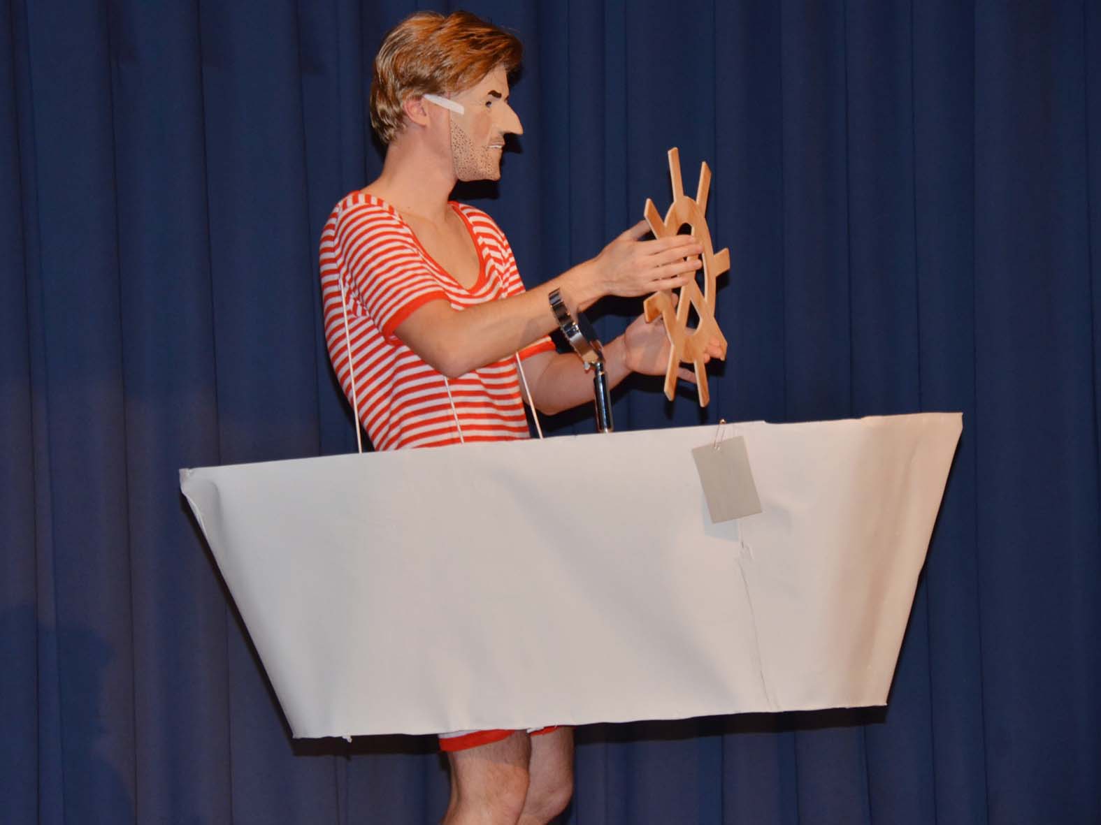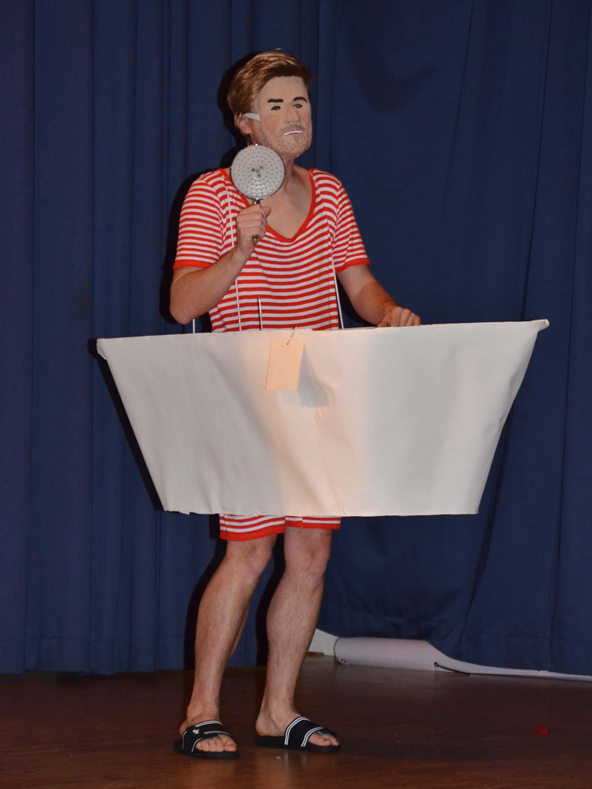 Auch ein prominenter Gast hätte fast den Zeller Preismaskenball beehrt. Das närrische Publikum durfte sehen, wie Schlagerstar »de Flori« in rot geringeltem Badeanzug mit goldener Frisur und perfekter Visage in seiner großen Badewanne in einem Zeller Hotel (das nur für ihn von der Fasend Ferien machte) badete. »Exklusiver Service« sei das, ein ganzes Hotel für sich zu haben. Dort trauerte Flori seiner Verflossenen Helene hinterher und verpasste ganz star-allüren-artig die Auftritte auf der Zeller Fasend. So ein Pech. Beim nächsten Engagement klappt es vielleicht besser, Kapitän Traumschiff.