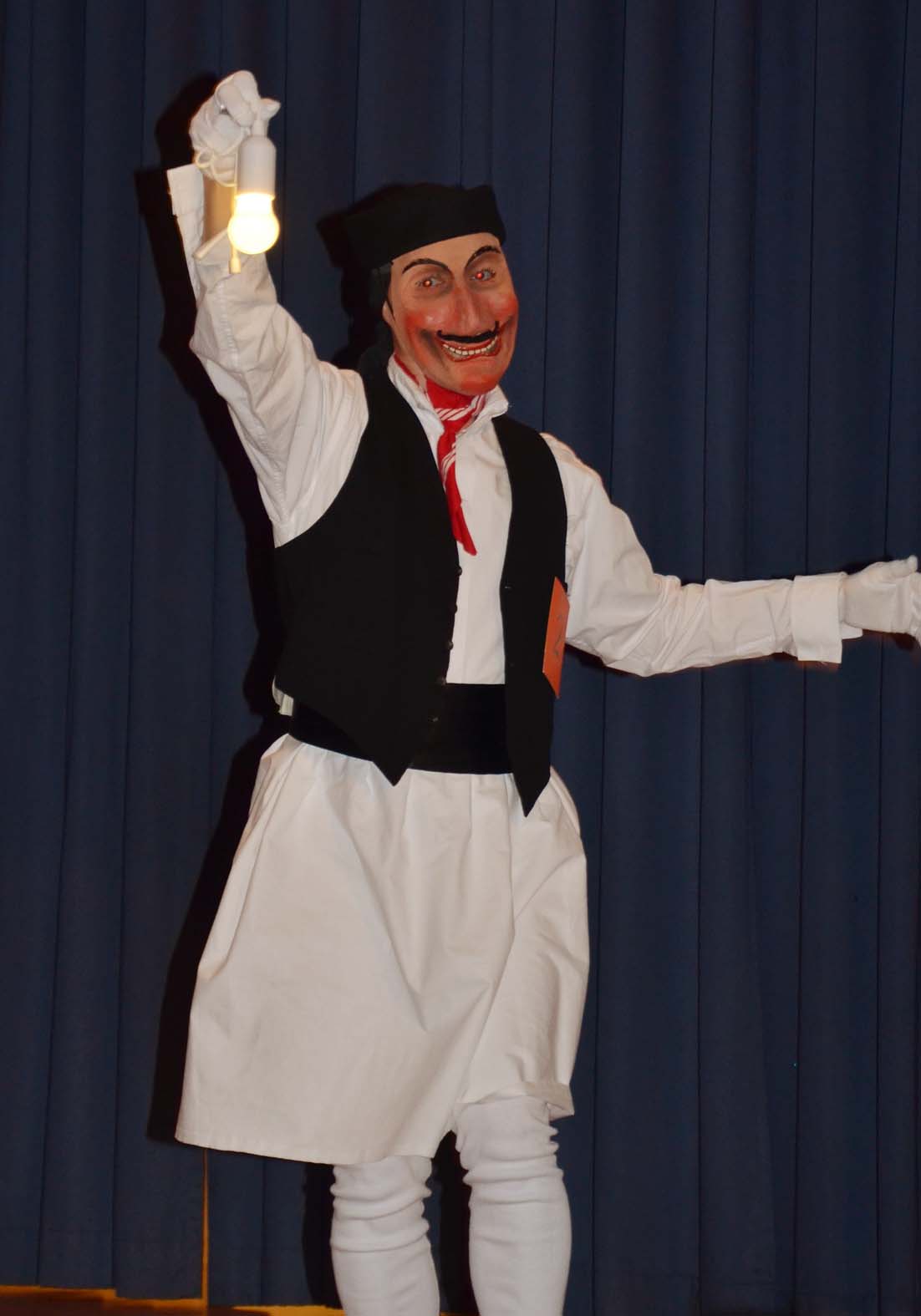 Für griechisches Lebensgefühl beim Preismaskenball sorgte mit traditionellem Liedgut und in Tracht ein Folklore Tänzer. »Liebe Zeller Fasend tanze Sirtaki mit mir, Sirtaki die ganze Nacht«, forderte er zum Tanz auf und begann mit breitem Lächeln auf der Maske den Sirtaki aufzuführen.