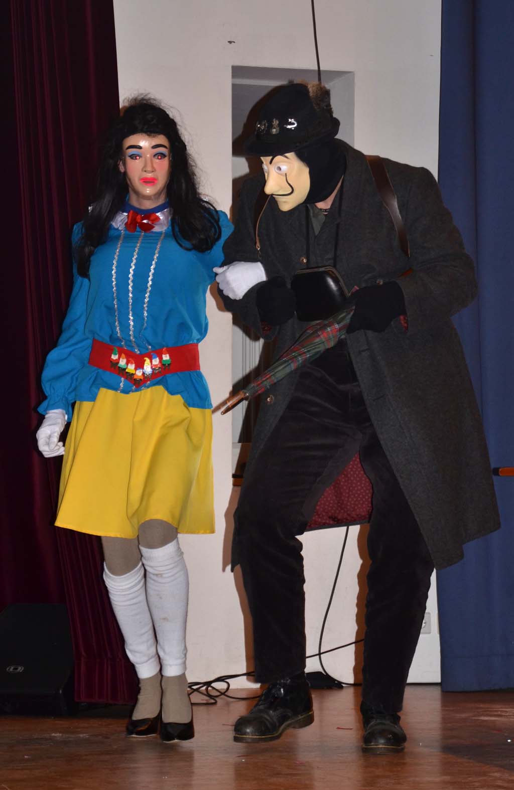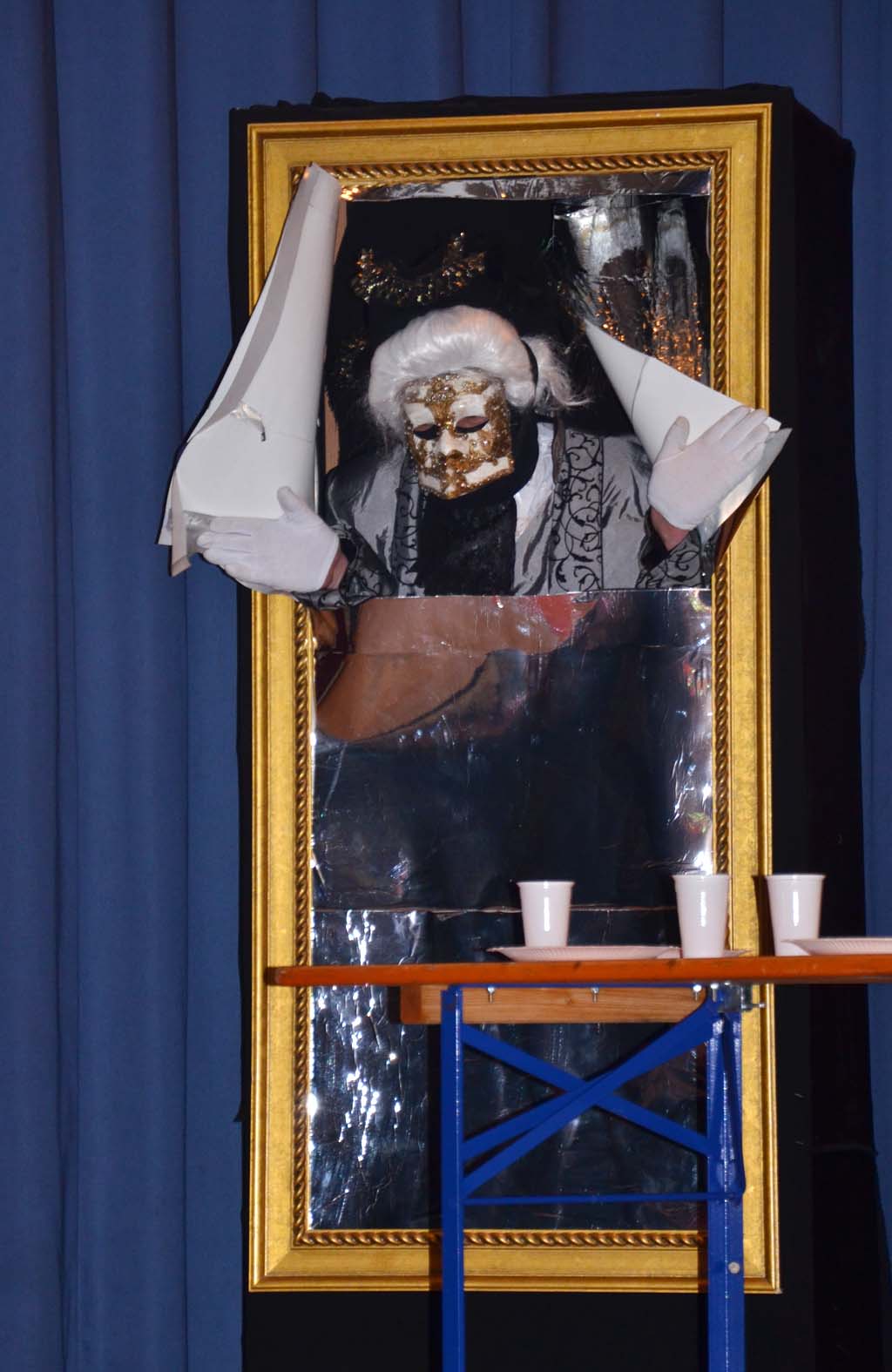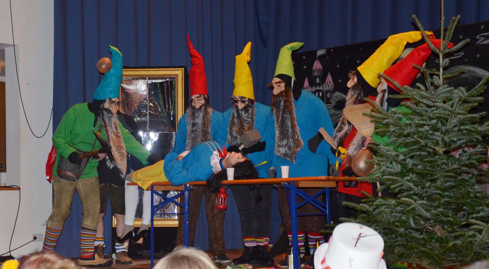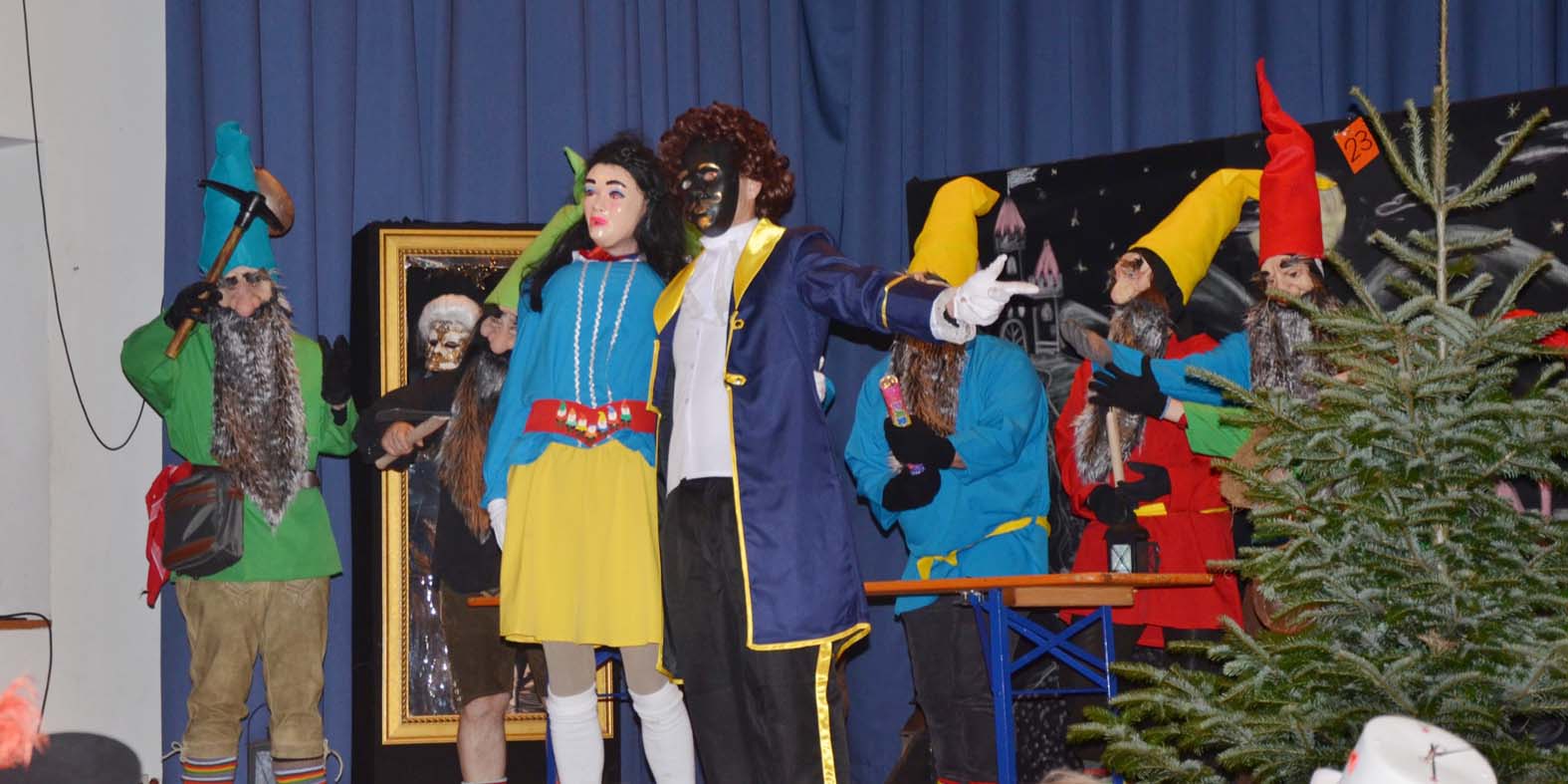 Zu guter letzt durften die Maskenballgäste ein Märchen der Gebrüder Grimm sehen. Alle Figuren von böser Königin bis rettenden Prinzen, von Spiegel bis zum siebten Zwerg und natürlich Jäger und Schneewittchen waren dabei. Manchen Interpretationsspielraum legten die Märchenstatisten vielleicht nicht ganz nach den Vorstellungen der Gebrüder Grimm aus, doch das Happy-End blieb dem Märchen erhalten.