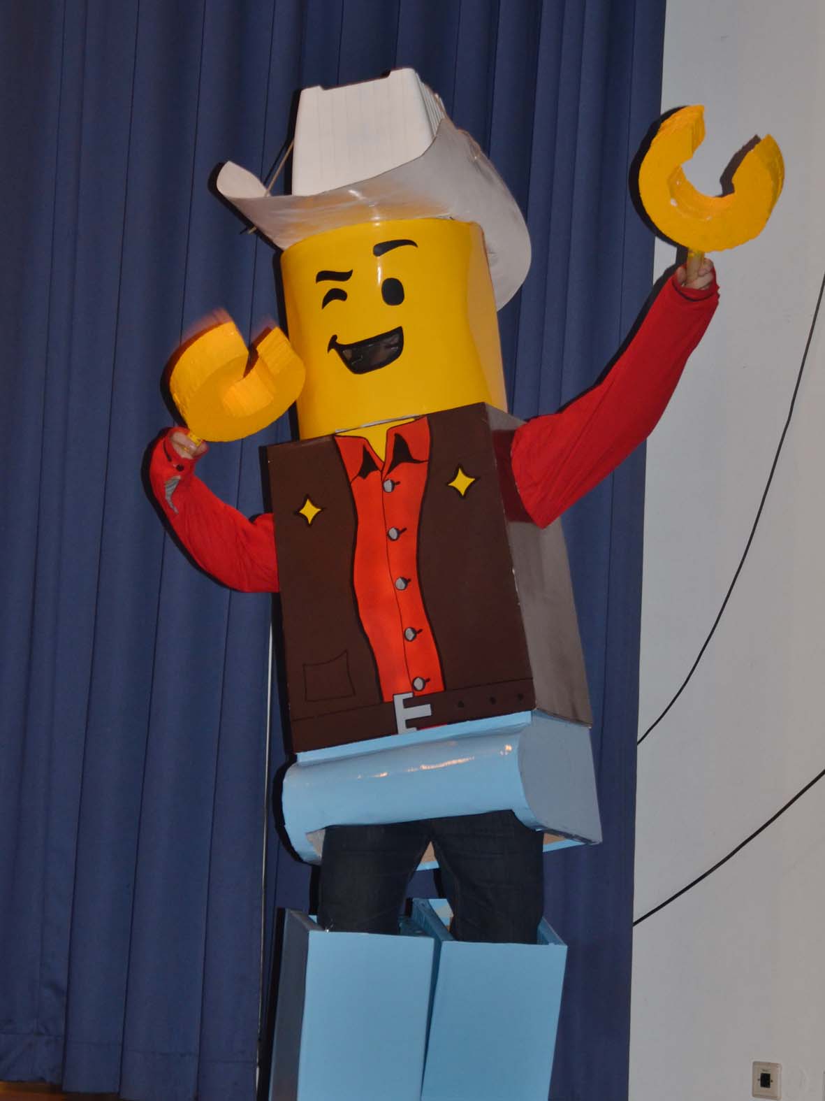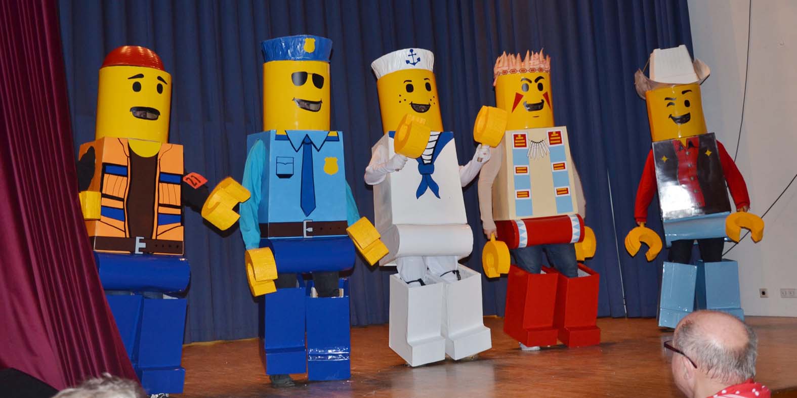 Eine zweite Gruppe ließ Legomännchen lebendig werden. Aus gelben Eimern, großen Kartons, mit viel Farbe, Lack und noch mehr Liebe zum Detail hatte die Gruppe Spielfiguren in Lebensgröße nachgebaut. Diese waren der Bauarbeiter, der Polizist, der Seemann, der Cowboy und der Indianer und zusammen gingen sie als Village People »auf d‘ Gass« und verbreite-ten für super »YMCA«-Stimmung.