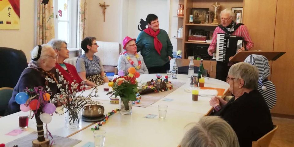 »Am Schmalzigen Friddig, da geht’s nicht in die Kirch, da wird geschunkelt und gelacht und gesellige Zeit miteinander verbracht«, war die Devise für den Tag. Passend zu diesem Motto waren die Räume vom Team der Tagespflege wieder dekoriert. Sehr freuten sich Team und Gäste, dass sie immer wieder Unterstützung von Klaus Zillhardt mit seinem Akkordeon bekommen. So wurde es richtig lustig und die fröhliche Atmosphäre brachte den Senioren viel Freude und Abwechslung.