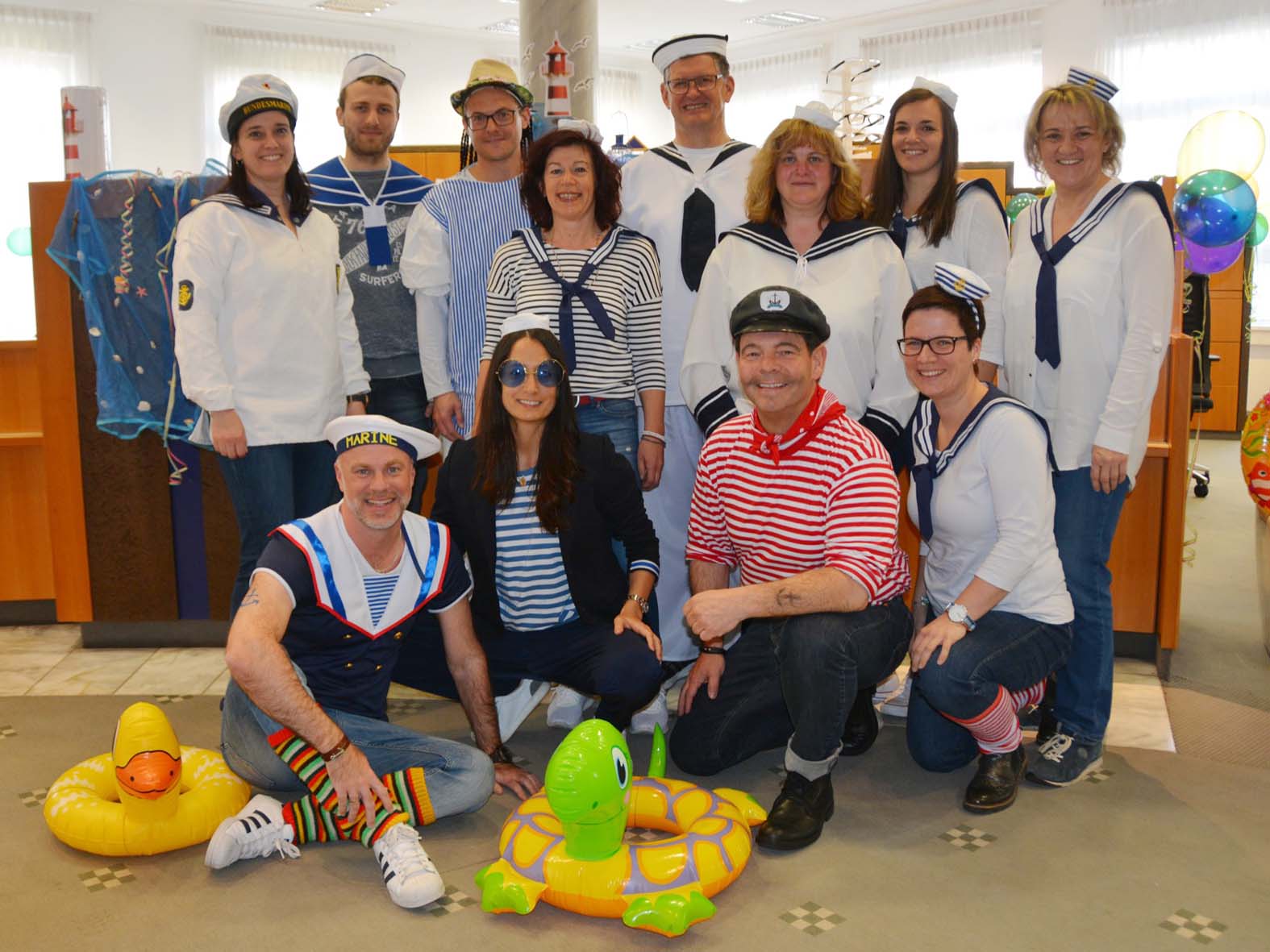 Die einen feiern Fasend, die anderen gehen derweil in den Urlaub. Nicht so das Zeller Volksbank-Team um Kapitän Mathias Hug. Das große Schiff der Volksbank-Bänker nahm Kurs auf das Narrenstädtle Zell und warf direkt neben dem Narrenbrunnen seinen Anker. Als Captian’s-Dinner gab es für alle Passagier leckere Berliner. Einige der Bordmitglieder hatten wohl ihre Zeche nicht bezahlt und mussten im Schwimmring durch den närrischen Ozean hinterher paddeln. »Schiff ahoi!«