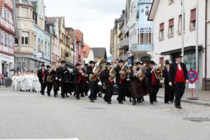 Der Musikverein Unterharmersbach begleitete die Unter­harmersbacher und Unterentersbacher Kinder auf ihren Weg, zunächst zum Rathaussaal und dann gemeinsam zur Stadtpfarrkirche.