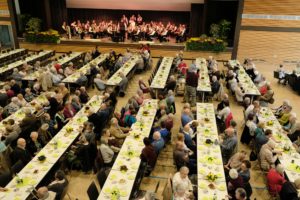 Zahlreiche Vereine, Institutionen und Unternehmen unterstützen den Seniorennachmittag tatkräftig. Mit flotter Blasmusik des Musikvereins Unterentersbach ging es an dem sonnigen Samstagnachmittag los. Der Katholische Kirchenchor St. Symphorian bewies, dass er im 250. Jahr seines Bestehens nicht nur in Sachen geistlichen Liedguts eine Instanz ist, sondern sich auch mit weltlichen Titeln auf der Bühne behaupten kann. Kinder aus der »Kleinen Wolke« hatten ein zauberhaftes Musiktheaterstück mit dem Thema »Die Vogelhochzeit« vorbereitet und ernteten für ihren Vortrag jede Menge Applaus. Der Musikverein Unterharmersbach hatte die Bewirtung übernommen, Sparkasse und Volksbank unterstützten die Veranstaltung finanziell. Auch die Fa. Schnurr und Prototyp, die Sozialstation und das Gallusheim, die Stadtgärtnerei und der Bauhof und viele andere mehr taten das ihrige dazu, um den Nachmittag zu einem Erlebnis zu machen.
