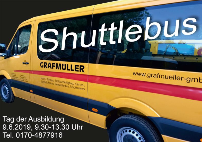 »Was will ich später mal werden?«, sollten die Schüler zuvor viele angebotene Stationen, die von den Firmen vorbereit werden, durchlaufen. Um die teilweise weiten Strecken schneller zu überwinden, bietet die Grafmüller GmbH exklusiv einen Shuttlebus an, der auch telefonisch unter Telefon 0170-4877916 angefordert werden kann.