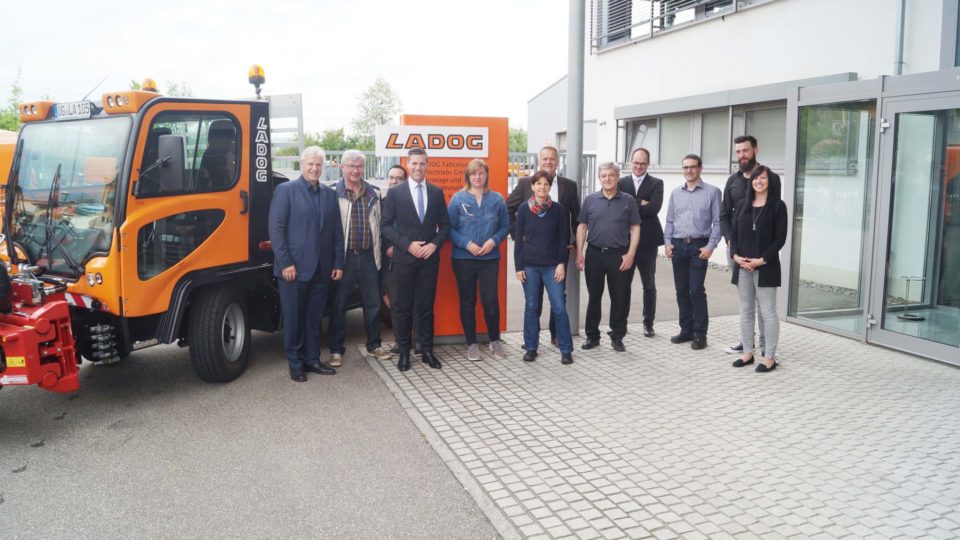 Manuel Hagel zeigte sich beeindruckt von der Geschäftsphilosophie und lobte das Unternehmen für die erfolgreiche Entwicklung. »Wir brauchen Unternehmen wie diese, um das Land Baden-Württemberg voran zu bringen.« Mit großem Interesse verfolgte er die Ausführungen und informierte sich insbesondere über Themen wie E-Mobilität und die Digitalisierung. »Wir müssen uns dem Fortschritt stellen und freuen uns, dass die Firma Ladog mit dem Elektroantrieb bereits schon weit vorangekommen ist.« Mit dem ELAAN (Elektrischer Antriebsstrang für Arbeits- und Nutzfahrzeuge) arbeiten die Guggenbühlers an einem Verbundprojekt, das vom Bundesministerium für Wirtschaft und Energie (BMWi) gefördert wird. Björn Guggenbühler berichtete, dass in enger Zusammenarbeit mit namhaften Unternehmen das erste Kommunalfahrzeug mit Brennstoffzellen-Hybrid-Antrieb entwickelt wurde. »Noch ist es ein Prototyp, aber die heutige Zeit und die umweltbewusste Kundschaft verlangt gerade im Hinblick auf Feinstaub und CO2-Ausstoß Antworten, die wir mit diesem Projekt geben können.«