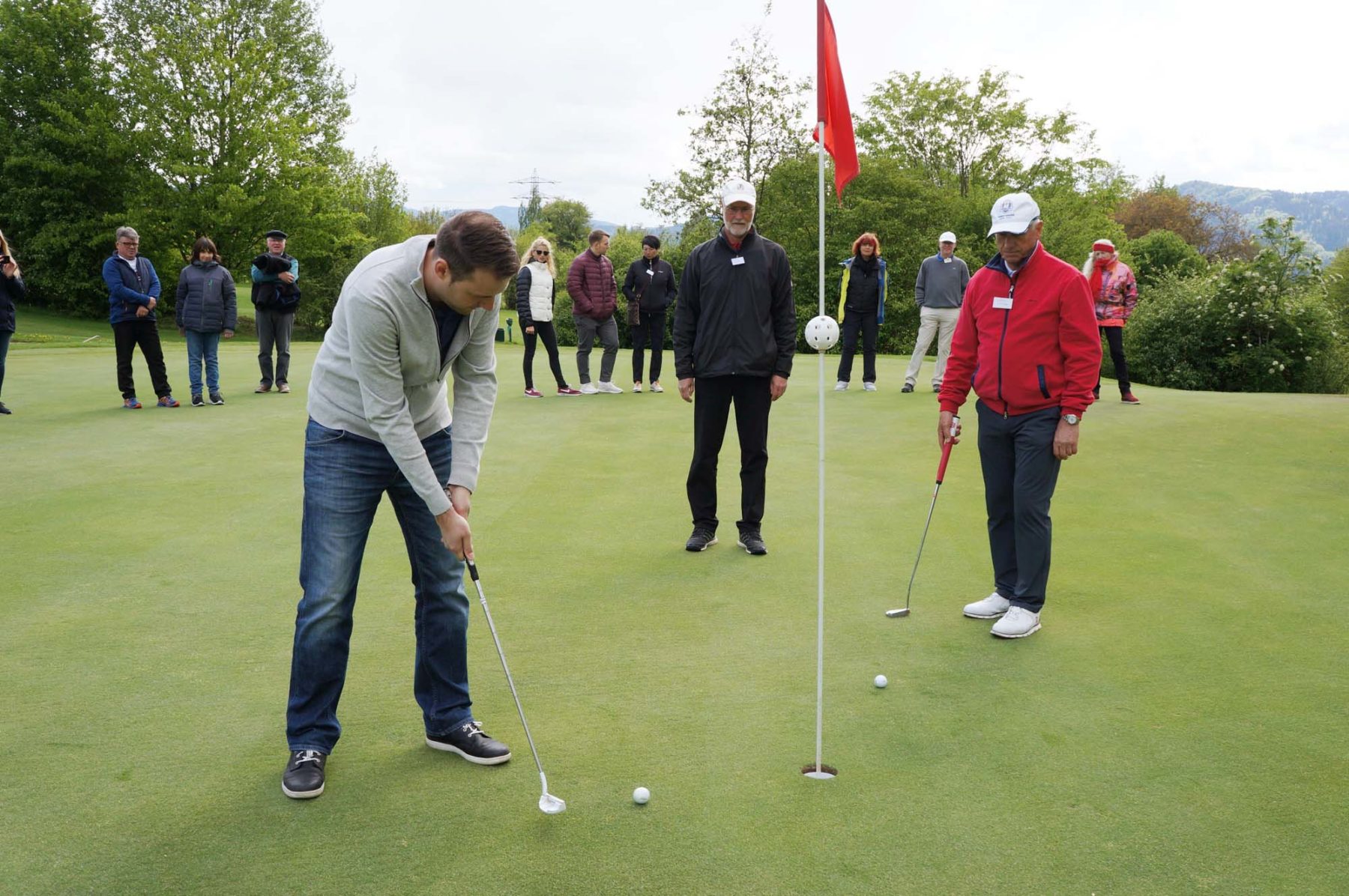 Nach der Begrüßung durch den Präsidenten Dr. Volker Hamann wurden die Teilnehmer in Gruppen eingeteilt und vom Pro (Trainer im Golfsport) und von erfahrenen Mitgliedern in die Grundzüge des Golfschlags eingeführt. Zuerst ging es zur Driving Range (Abschlagplatz), wo die Teilnehmer mal so richtig die Bälle raushauen konnten, danach ging es zum Kurzspielplatz, wo »Pitchen« und »Putten« geübt wurde. Letztlich ging es auch auf den Parcours, wo es am Beispiel von zwei bespielten Bahnen einen Vorgeschmack auf das eigentliche Golfspiel gab.