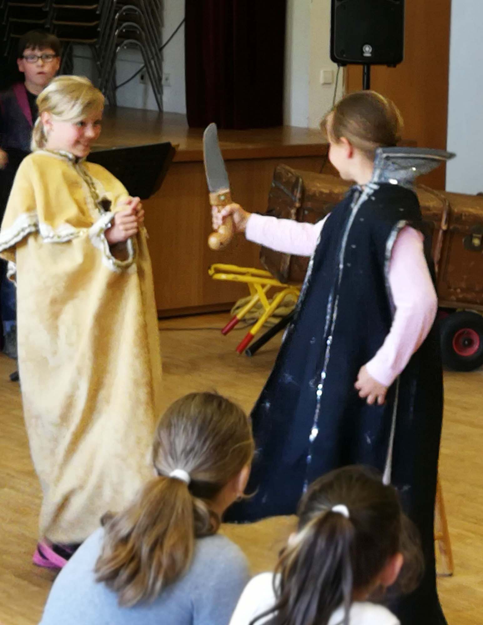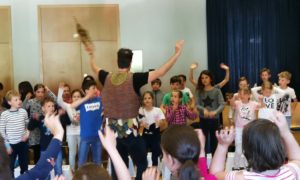 Musiklehrerin Dorothea Kuhnt hatte die Sprechrollen mit Mädchen und Jungen aus verschiedenen Klassen besetzt und die Texte eingeübt, so dass vor der »Opernpremiere« im KuVz nur einige Regieanweisungen und Stellproben stattfanden.