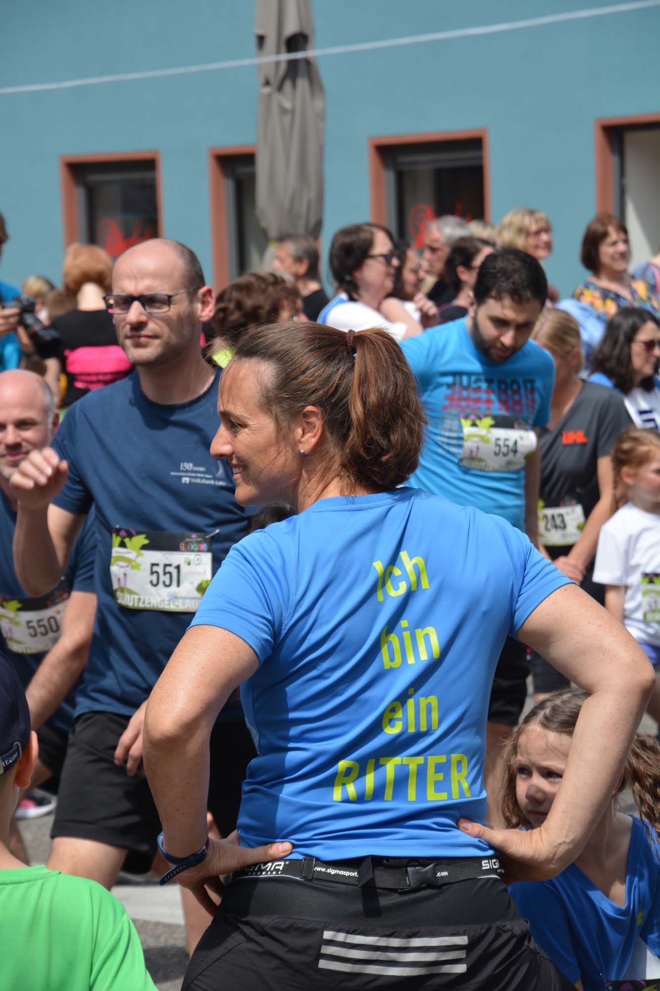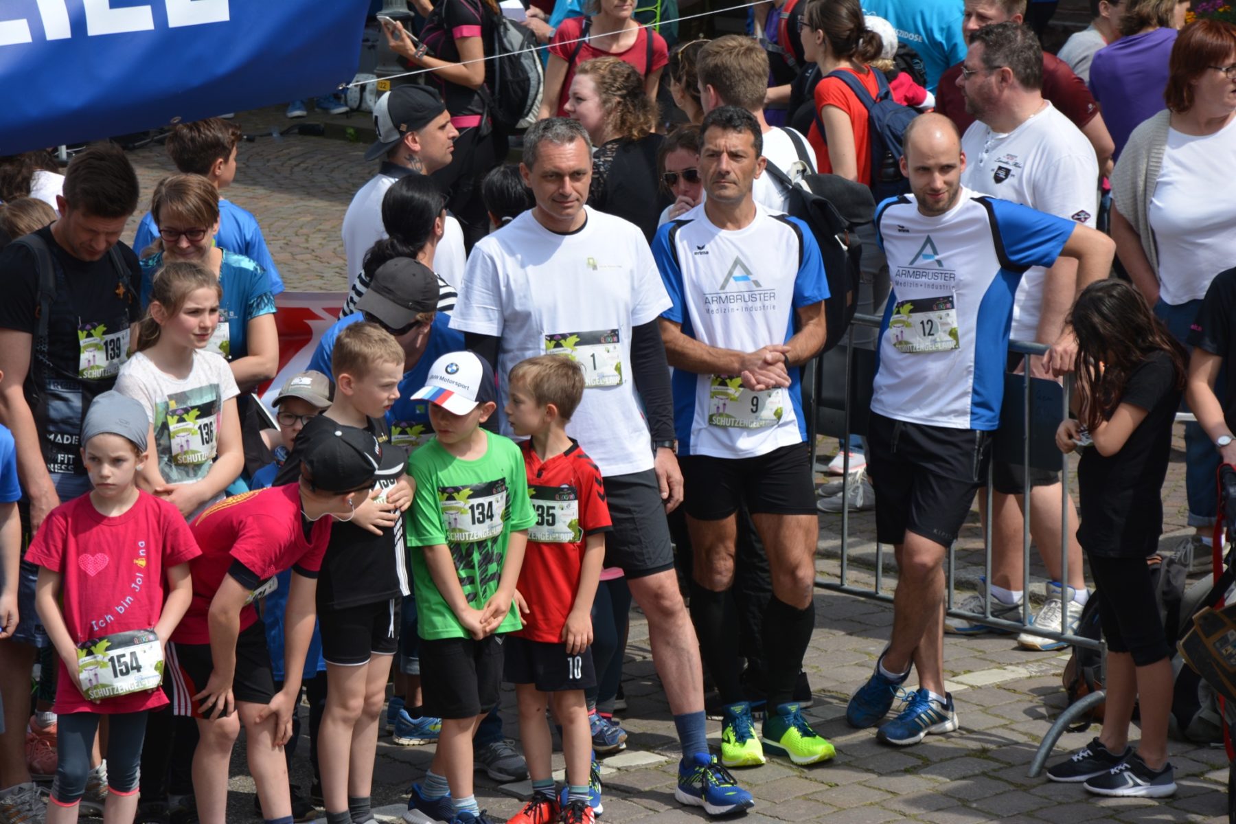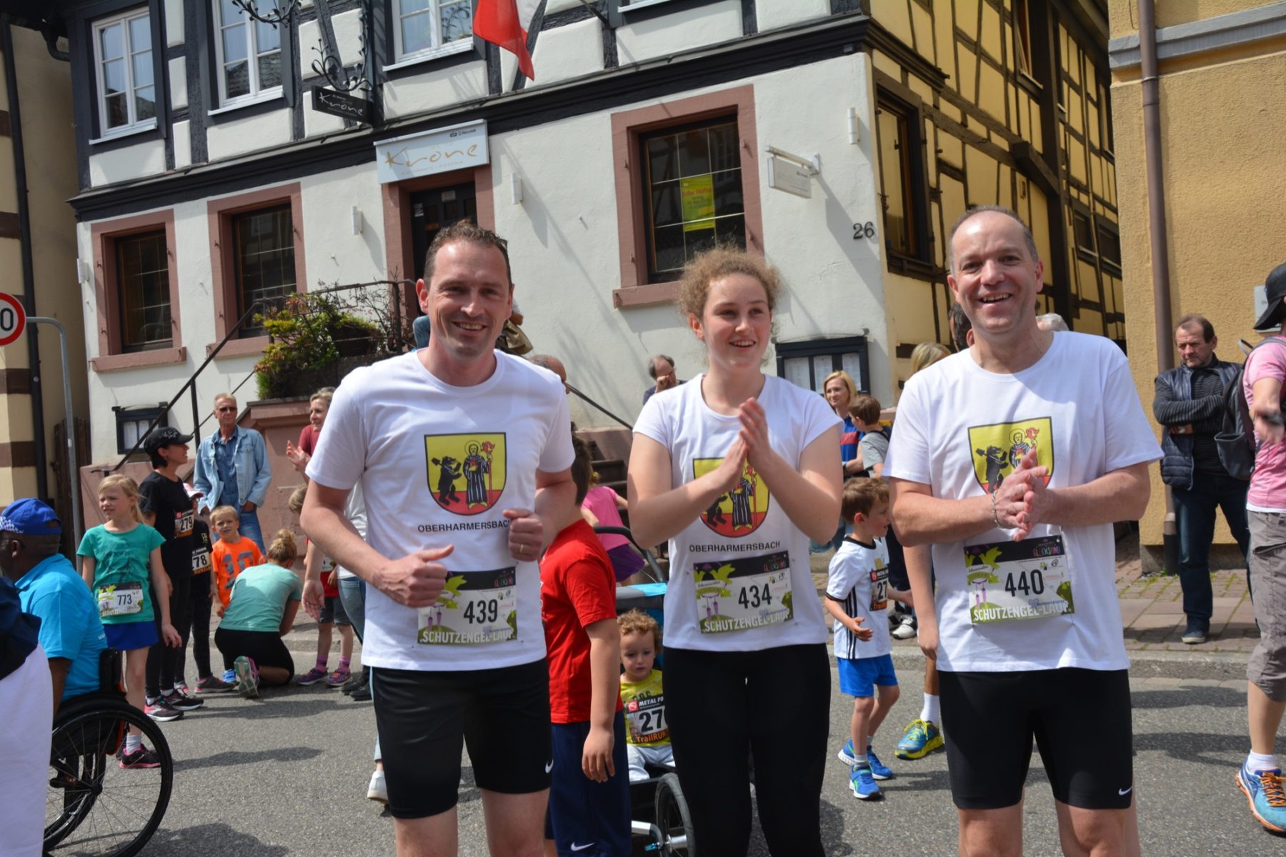 Das Laufevent ist ein Ereignis, bei dem vor allem Gruppen Flagge zeigen – insgesamt waren es am Samstag 85. »Ich bin ein Ritter« war auf insgesamt 181 blauen Laufshirts in großen gelben Lettern zu lesen. Damit waren die Schülerinnen, Schüler und Lehrer des Bildungszentrums Ritter von Buß die größte Gruppe beim 4. Schutzengel-Lauf. Die größte Firmengruppe stellte AAM-Metaldyne aus Unterharmersbach mit 76 gemeldeten Starten. Gemeldet waren auch die Grundschule Unterharmersbach und die Hochschule Offenburg. Bemerkenswert ist die Teilnahme der Kommunionkinder aus Seebach, die mit 39 Teilnehmern am Schutzengel-Lauf an den Start gingen. Die Startnummer 1 trug wie im Vorjahr Bürgermeister Günter Pfundstein. Mit von der Partie war auch die Nummer 1 von Oberharmersbach, Bürgermeister Richard Weith.