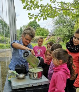 Siebzehn Kinder trafen sich zum neuen Angebot »Wildpflanzenküche für Kinder ab sieben Jahren«. Bewährte Küchenleiter waren die beiden Frauen Monika Heizmann und Heike Kößler. In vielen Stunden kreativer Vorbereitungszeit wurden Rezepte entwickelt, das Konzept erstellt und die gesamte Organisation vorbereitet.