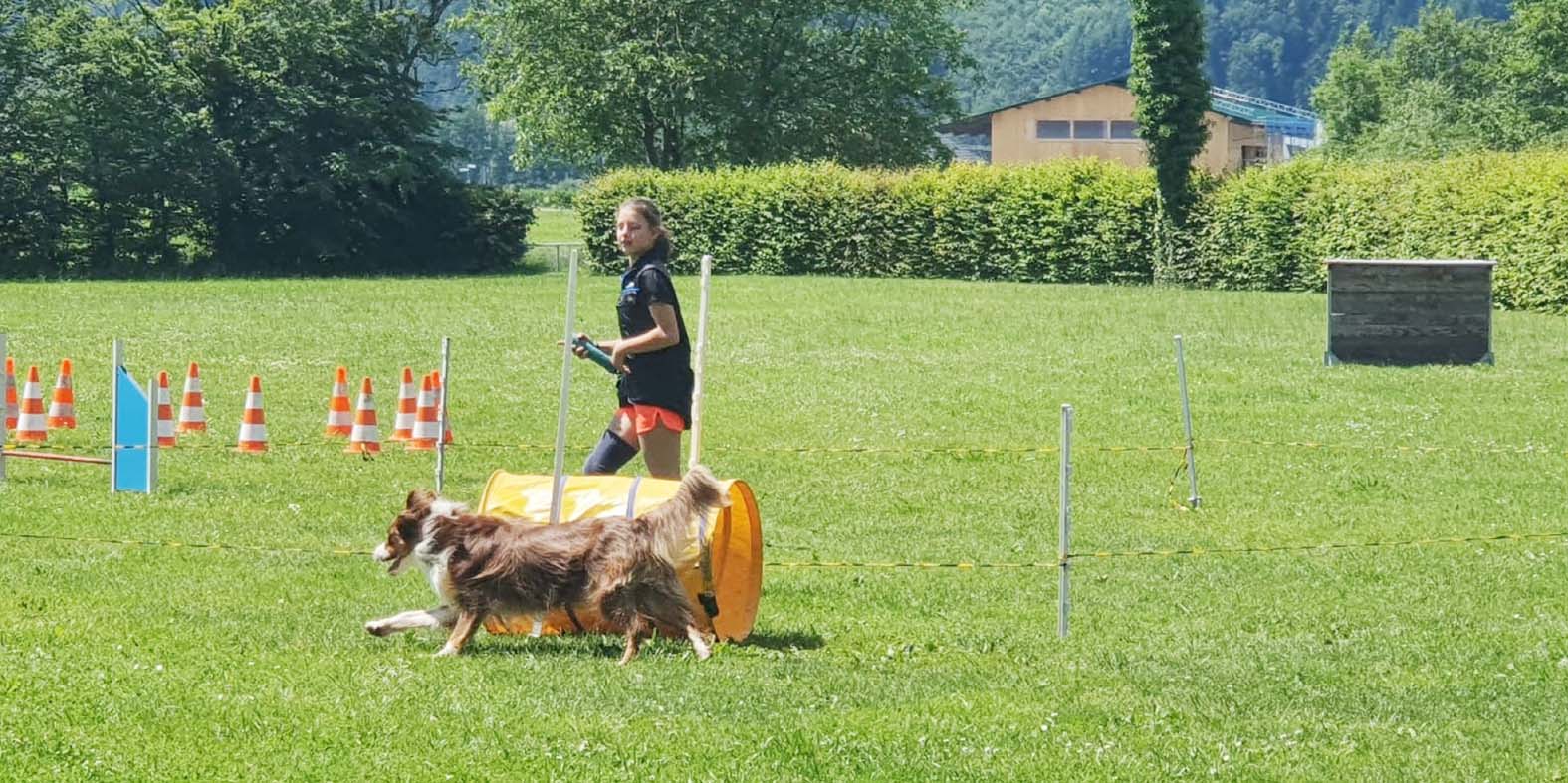 Rasanter ging es beim Turnierhundesport (THS) zu. Man hatte den Eindruck, dass Sammy über die Hindernisbahn nur so flog, sodass Hundeführerin Kim Zurbrügg Mühe hatte, ihm zu folgen. Beim Hürdenlauf sprang Beate Riehle synchron mit ihrer Hündin Nele über Hürden.
