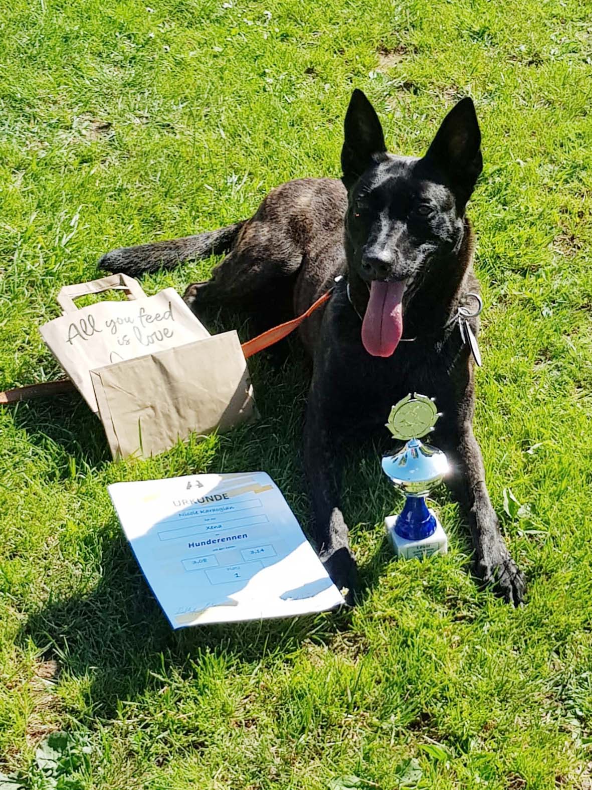 Das Highlight des Festes war jedoch das Hunderennen. Mit 29 Startern war Spannung garantiert. Die Zuschauern staunten über den Rottweiler-Welpen Wenko, der sich die 20-Meter-Youngster-Distanz mit dem typischen Rottweilergang erarbeitete, freuten sich über die kleinste Teilnehmerin des Rennens, der Chihuahua-Hündin Lola, die sich tapfer über die 30-Meter-Strecke zu ihrem Frauchen Nicole tapste und stauten über den Esprit des ältesten Starters Aslan, der mit seinen 13 Jahren noch ordentlich »Dampf« unter den Pfoten hat. Schnellster Hund war Xena mit einer Spitzenzeit von 3,08 Sekunden für die 30-Meterbahn.