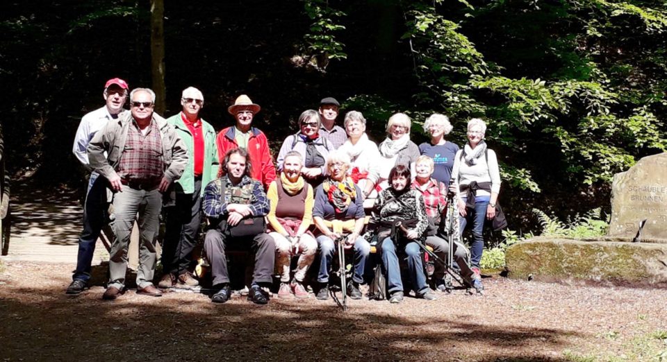 Die 17 Wanderer erreichten schließlich den Schäuble-Brunnen mitten im Wald, wo eine Pause eingelegt wurde mit dem üblichen »Gipfel«-Getränk sowie Süßigkeiten. Nach dem Gruppenfoto ging es dann weiter Richtung Festplatz Santis Claus auf dem Ortenauer Weinpfad.