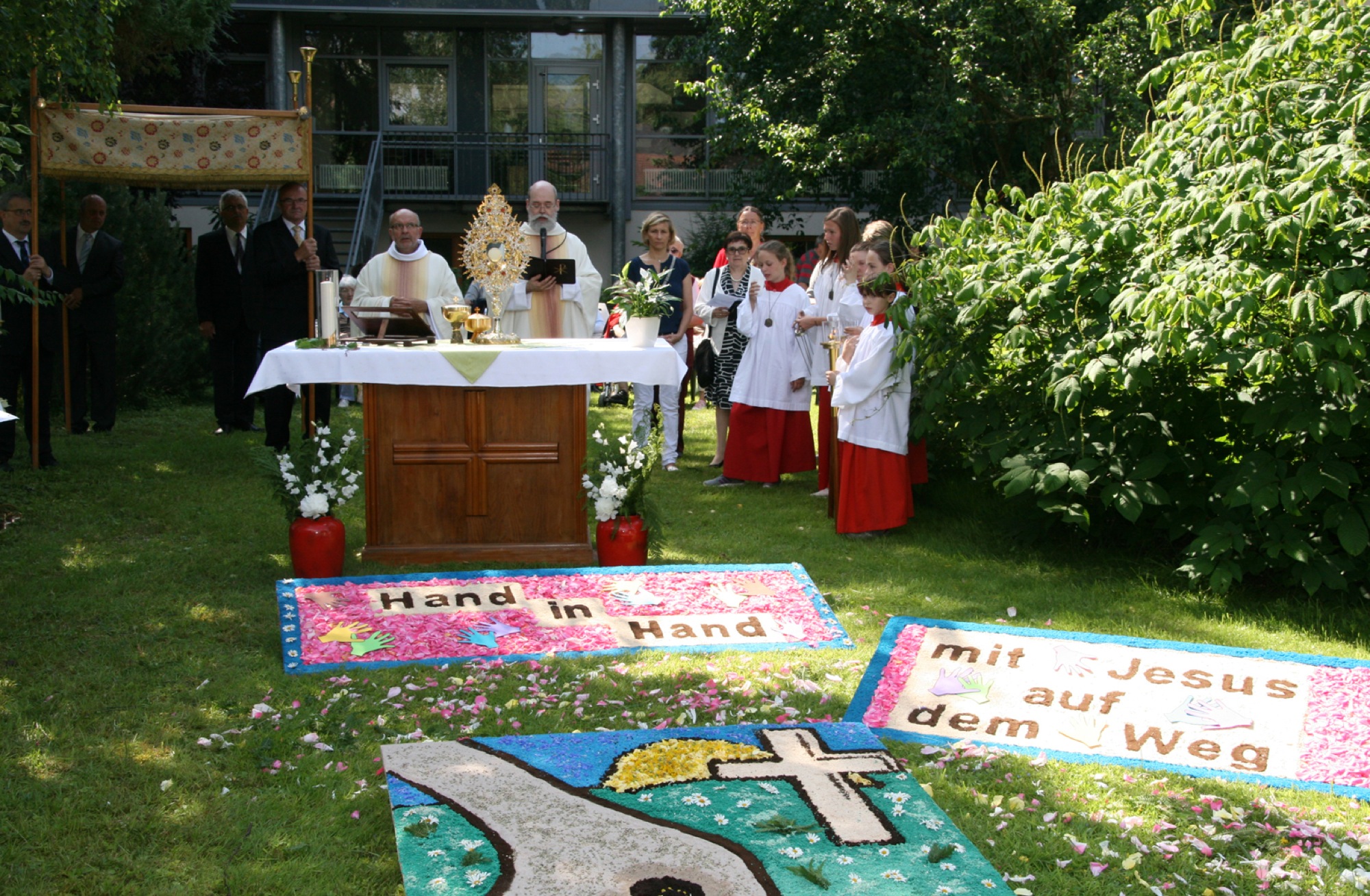 Der Prozessionsweg führt durch das geschmückte Städtle über die Kirchstraße, Hauptstraße, Spitalstraße, Gartenstraße, St. Gallusstraße bis zum Seniorenzentrum St. Gallus. Nach der geistlichen Feier, bei einem geschmückten Altar im Park führt der Prozessionsweg wieder zurück zur Stadtkirche St. Symphorian. Der feierliche Segen, begleitet vom Ehrensalut der beiden Bürgerwehren zur Ehre Gottes, beschließt die kirchliche Feier in der Stadtkirche. Gefolgt von einer Ehrensalve für die Geistlichkeit.