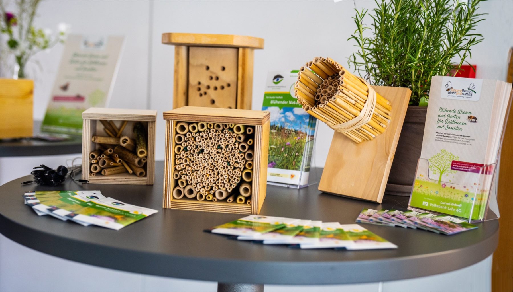 »Bunte Blumenwiese statt sterilem Rasen«, »Kein Gift« und »Quartiere für Groß und Klein« lauten weitere Anregungen für eine naturnahe Umwelt. So gibt es das Volksbank-Logo jetzt auch in Holzform als kleines Insektenhotel. »Das Projekt soll Schritt für Schritt wachsen«, betont Vorstandsvorsitzender Peter Rottenecker. Er sieht im Engagement für den Natur- und Umweltschutz eine Strahlwirkung von Lahr aus in den gesamten Geschäftsbereich.