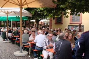 Zu den kulinarischen Spezialitäten aus der Schützenküche gehören das beliebte Schaschlik und der leckere Salatteller. Auch flüssige Köstlichkeiten werden nicht fehlen: Zum ersten Mal stehen Ulmer Biere aus der Familienbrauerei Bauhöfer auf der Karte. Bei einem Gläschen Schorle oder Bürgerwehrbowle kann viel geplaudert werden und Kommandant Gutmann begrüßt die Gäste, sowohl persönlich als auch von der Bühne aus. Besonders freut er sich, dass Gäste aus der Partnerstadt Frauenstein sich die Zeit für einen Besuch genommen haben. »Fast 40 Frauensteiner haben ihr Kommen zugesagt und sind von Freitag bis Montag in Zell zu Gast.