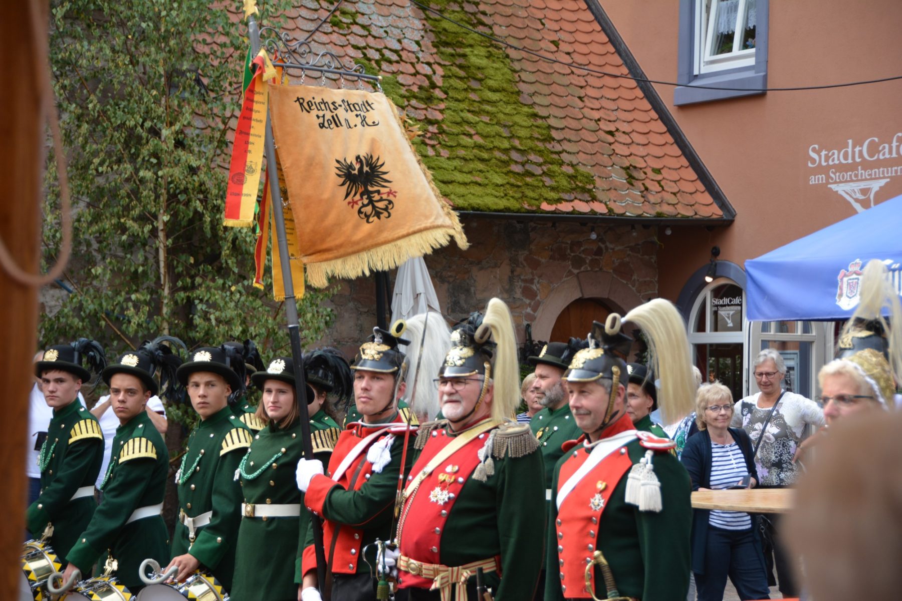 Nachdem der Festplatz während der Nachtwache von den Ulanen auf Hochglanz gebracht ist, marschiert die Bürgerwehr um 10.30 Uhr zum Tag der Heimat auf. Bei idealen äußeren Bedingungen, so versprechen es die Wetterfrösche, können Gäste gelebtes Brauchtum durch die Freiwillige Bürgerwehr Zell erleben. Im Mittelpunkt steht die Ansprache von Bürgermeister Günter Pfundstein und die Ehrung von verdienten Mitgliedern der Zeller Bürgerwehr.