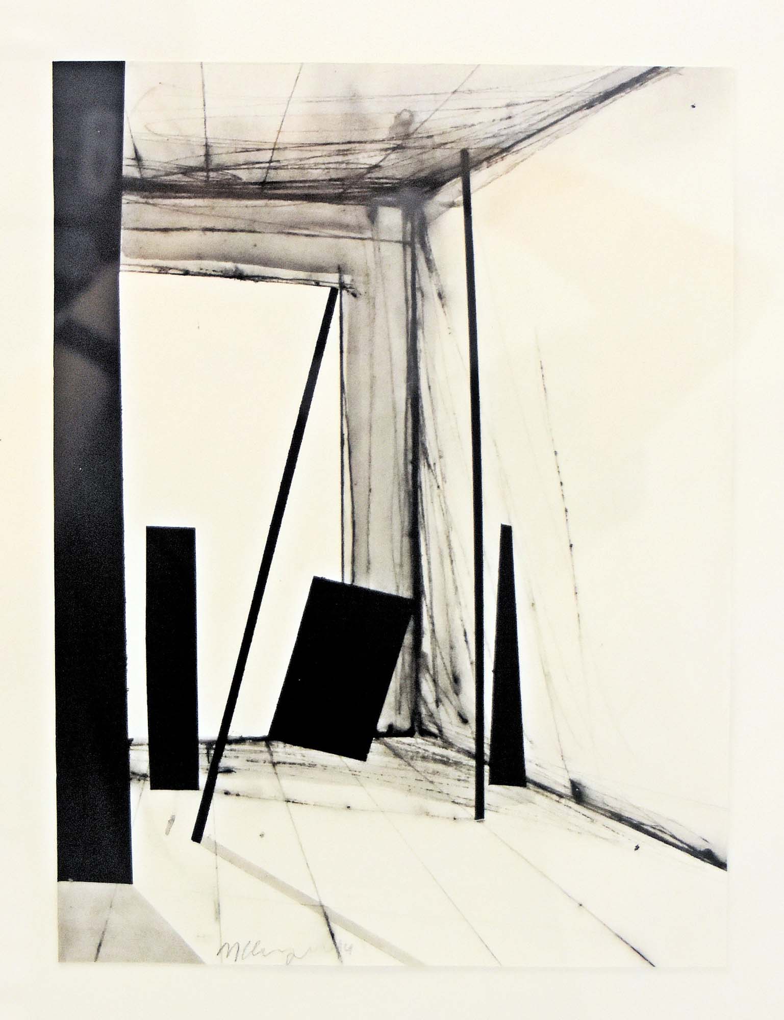 Mit dem zweiten Positionswechsel der Ausstellung werden elf abstrakte Zeichnungen von Ymer Shaqiri gezeigt. Als aufmerksamer Betrachter glaubt man bei seinen Arbeiten in die Tiefe des Raumes zu blicken. Oder sieht eine perfekt arrangierte Collage. Aber es ist tatsächlich keine Dreidimensionalität, sondern nur eine optische Täuschung. Die Arbeiten sind meistens in Schwarz-, Weiß- oder Grautönen gehalten, gezeichnet mit einer exakten Linienführung. Der Zeichner liebt das Spiel mit dem Schatten, es hebt die Plastizität hervor. Shaqiri, geboren 1953 im Kosovo, studierte an der Kunstakademie in Pristina und Belgrad. 1996 kam er nach Deutschland und lebt in Brühl bei Mannheim.