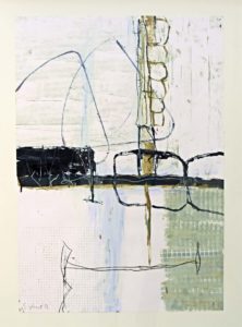 Im Gegensatz zum vorgenannten Künstler arbeitet Stefan Voigt mit kräftigen Pinselstrichen. In seinen sechs ausgestellten Papierarbeiten trifft man immer wieder Zufall und geordnetes System, die der Künstler inszeniert. Es entstehen Schraffuren, Schwünge, eckige Flächen, aber auch Flecken, Gitter und Spiralen. Die Farben sind pastellartig, geben einen farblichen Schwerpunkt und kontrastieren mit Weiß und Schwarz. Die Linien verbinden die Bildelemente. Stefan Voigt, 1961 in Dresden geboren, studierte an der Hochschule für Bildende Künste in Dresden. Seit 1987 arbeitet er freiberuflich als Maler und Grafiker in Dresden.