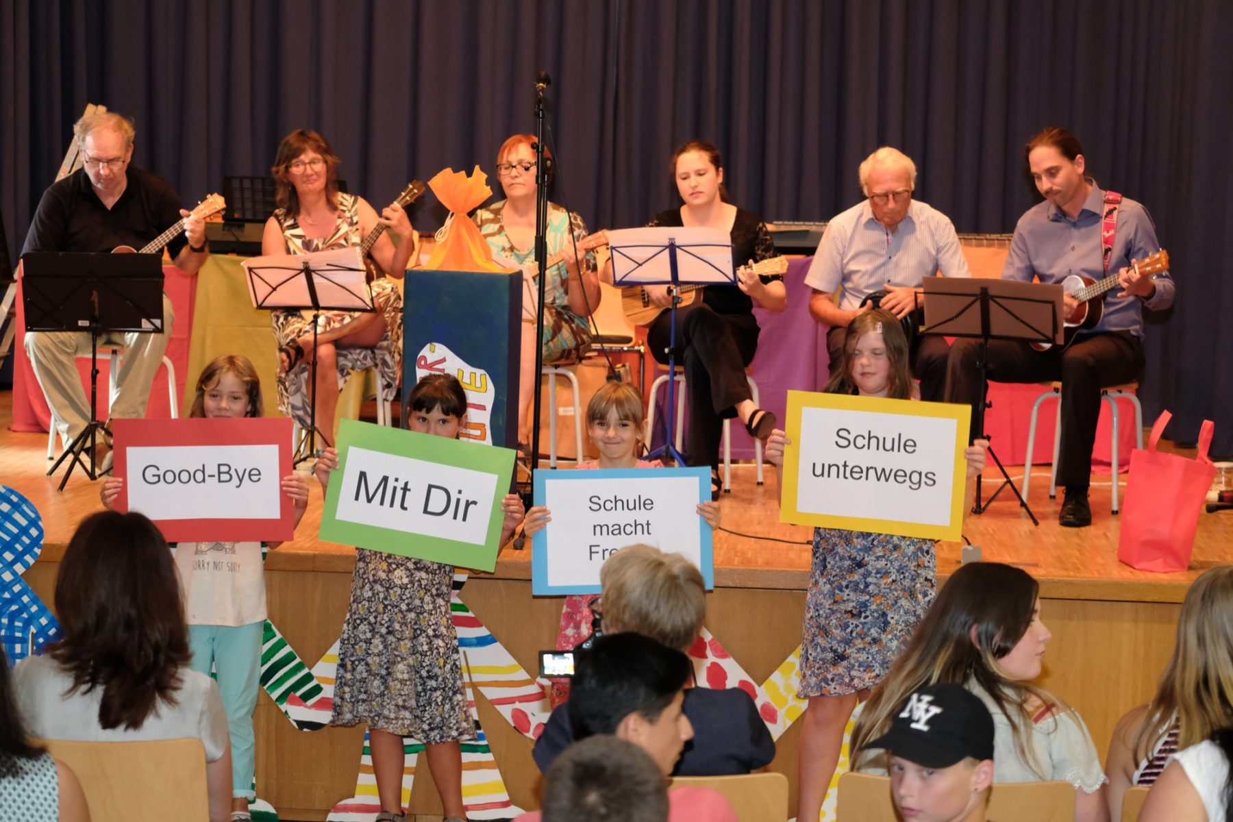 Er ging zurück zu dem Tag vor 16 Jahren, als er Schulleiter wurde. Bei seiner Einführung habe er ein Lied gesungen, das für ihn eine besondere Bedeutung habe. Und genau dieses Lied kam wieder auf die Bühne. Es war »Kinder« von Bettina Wegner. Er sang es noch einmal – zusammen mit seinem Nachfolger Matthias Demmel.