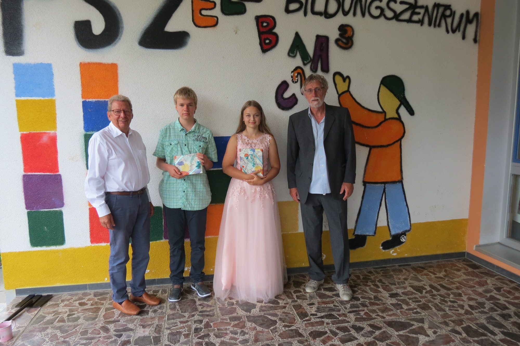 Der Preis für das beste Zeugnis erhielt Jennifer Zilch und der Preis des Fördervereins für schulisches Engagement ging an Felix Wylegalla, der vom stellvertretenden Fördervereinsvorsitzenden Bernd Gartmann überreicht wurde.