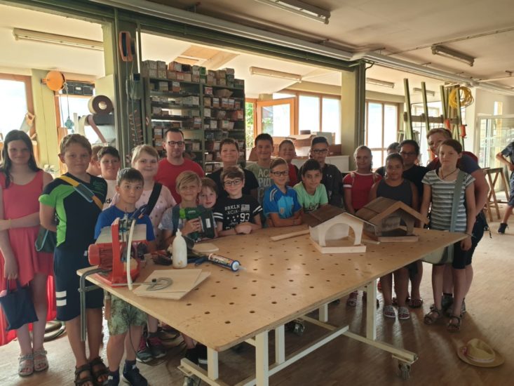 Dort lernten die Schülerinnen und Schüler den Beruf des Schreiners kennen. Die Schüler durften die Werkstatt besichtigen, Arbeitsabläufe kennen lernen und gemeinsam ein Vogelhaus bauen.