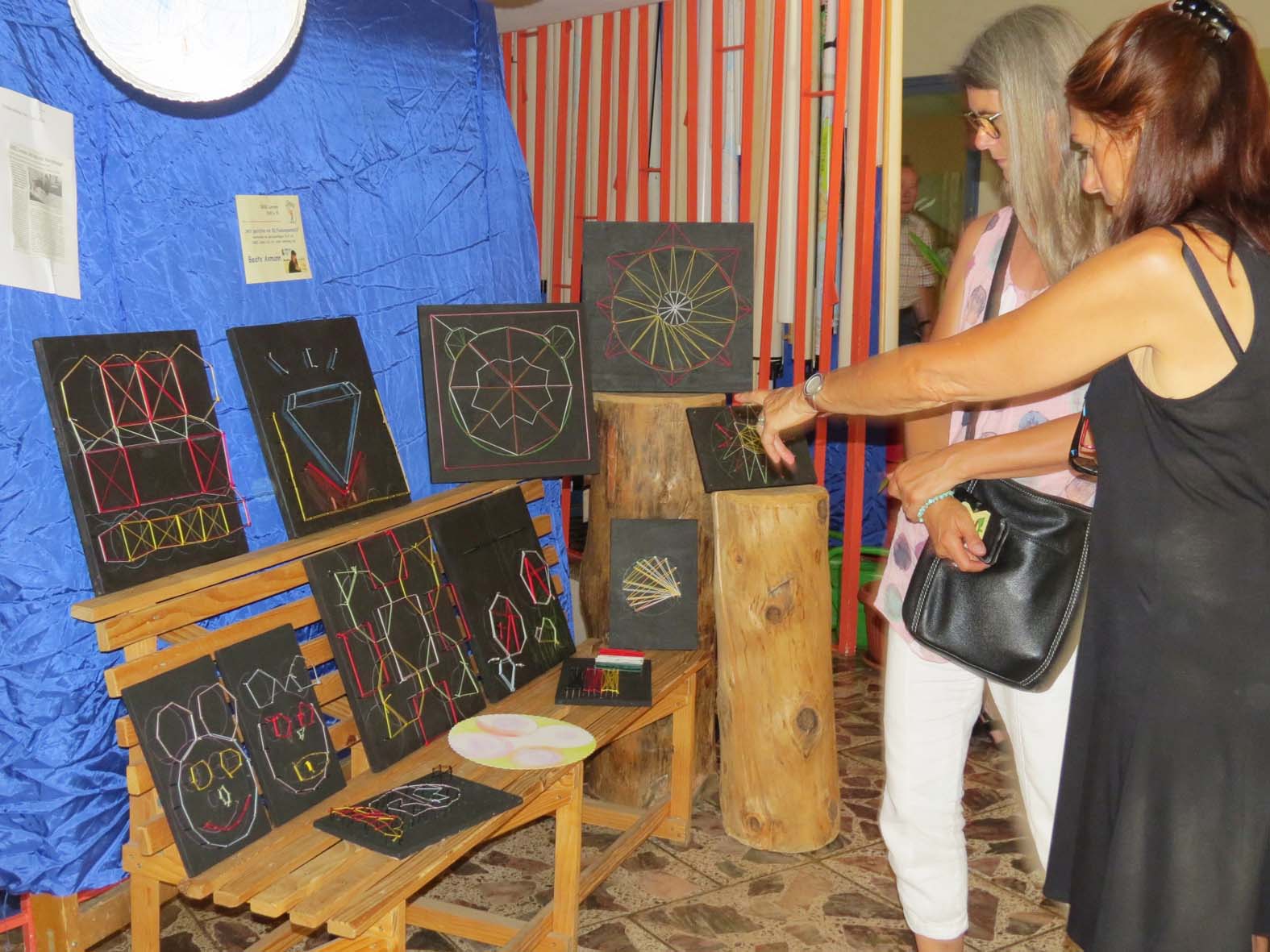 Am Ende des Programms gab es Gelegenheit, in dem großen Pausenhof die Kunstwerke der Schüler zu bewundern, die sehr dekorativ und mit originellen Ideen aufgebaut waren. Stolz zeigten dabei die Kinder den Eltern ihr eigenes Kunstwerk.