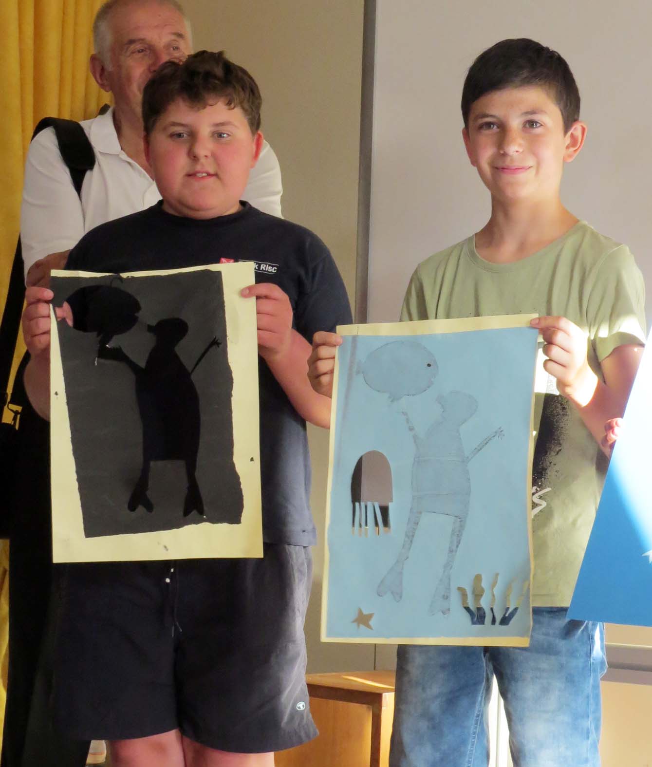 Auf großer Leinwand wurde ein Videofilm gezeigt, der während der Kunsttage gedreht wurde. Darin konnte man den Kindern bei ihrem künstlerischen Schaffen zusehen. Anschließend berichteten sie selbst von ihren Projekten und zeigten entsprechende Kunstwerke dazu.