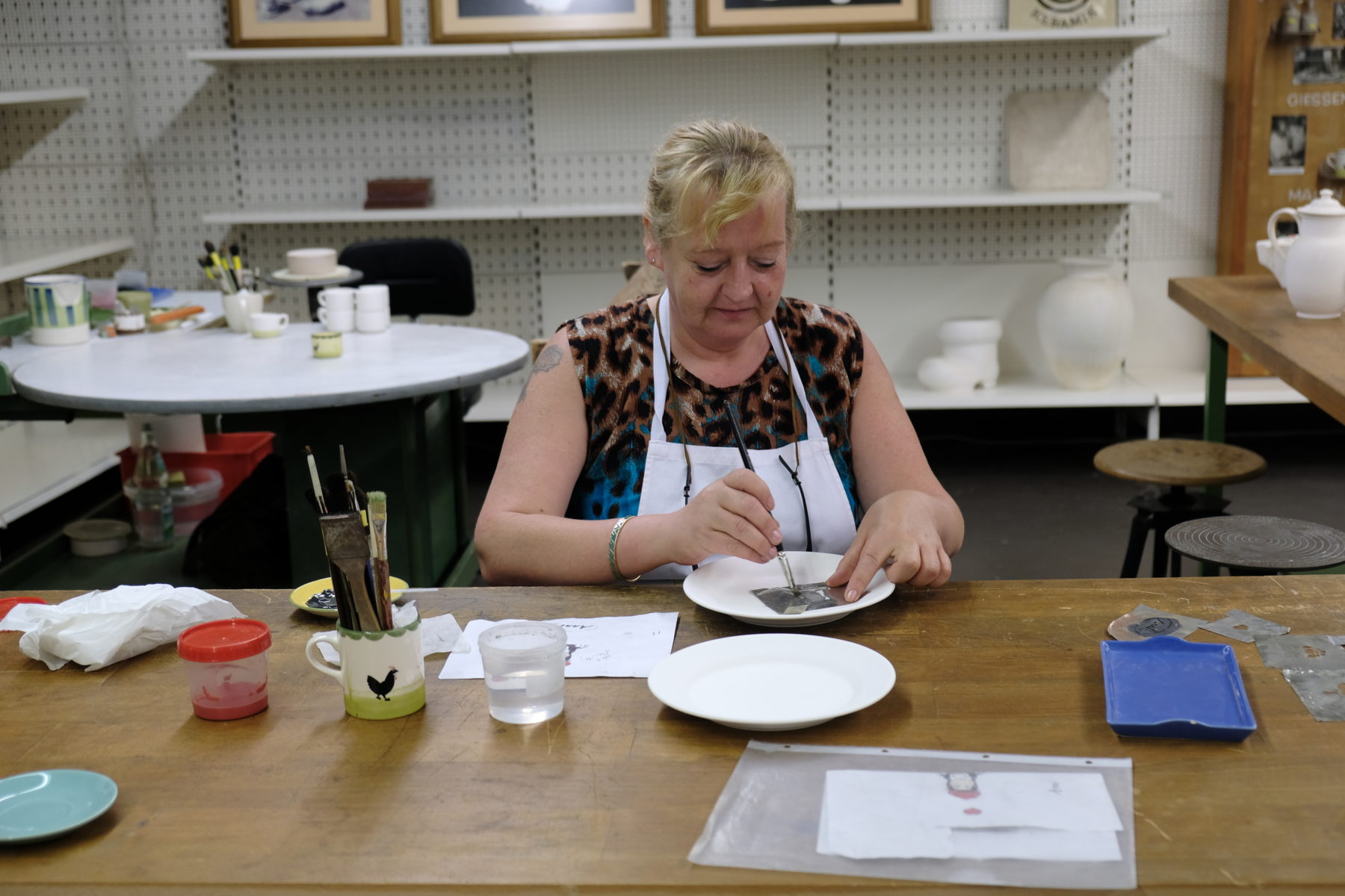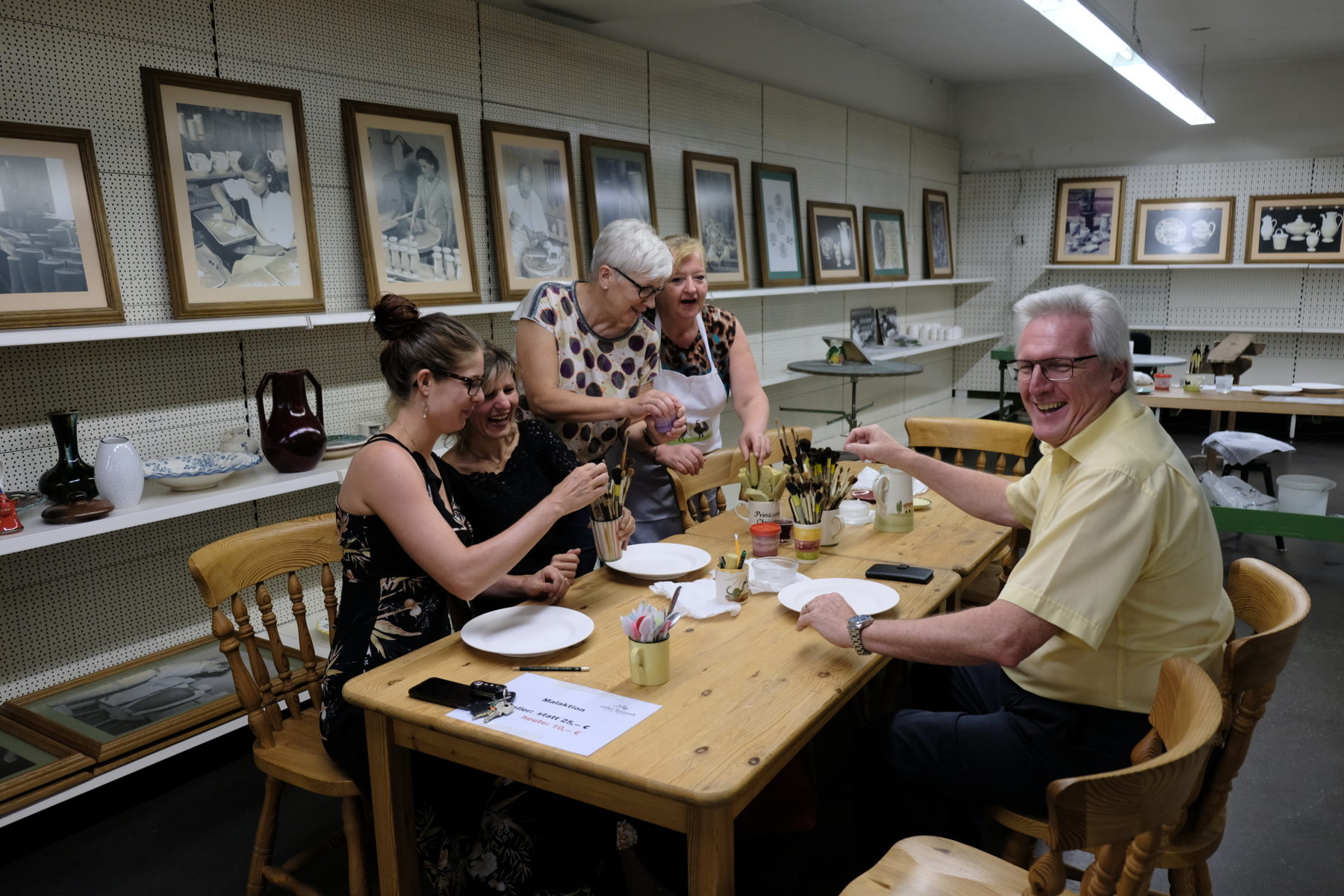 Im Untergeschoss konnte man Keramikmalerin Kerstin Rezgui über die Schulter schauen, wie das brandneue »Anni«-Dekor entsteht, das am Samstag seine Weltpremiere feierte, und selbst auf XXL-Teller-Rohlingen mit ganz eigenen Motiven Hand anlegen. Der richtige Pinselstrich gelang unter der fachkundigen Anleitung von Keramikmalerin Erika Börsig allen auf Anhieb, so dass man rundum in zufriedene Gesichter blicken konnte. Auch die museale Ausstellung fand großen Anklang.