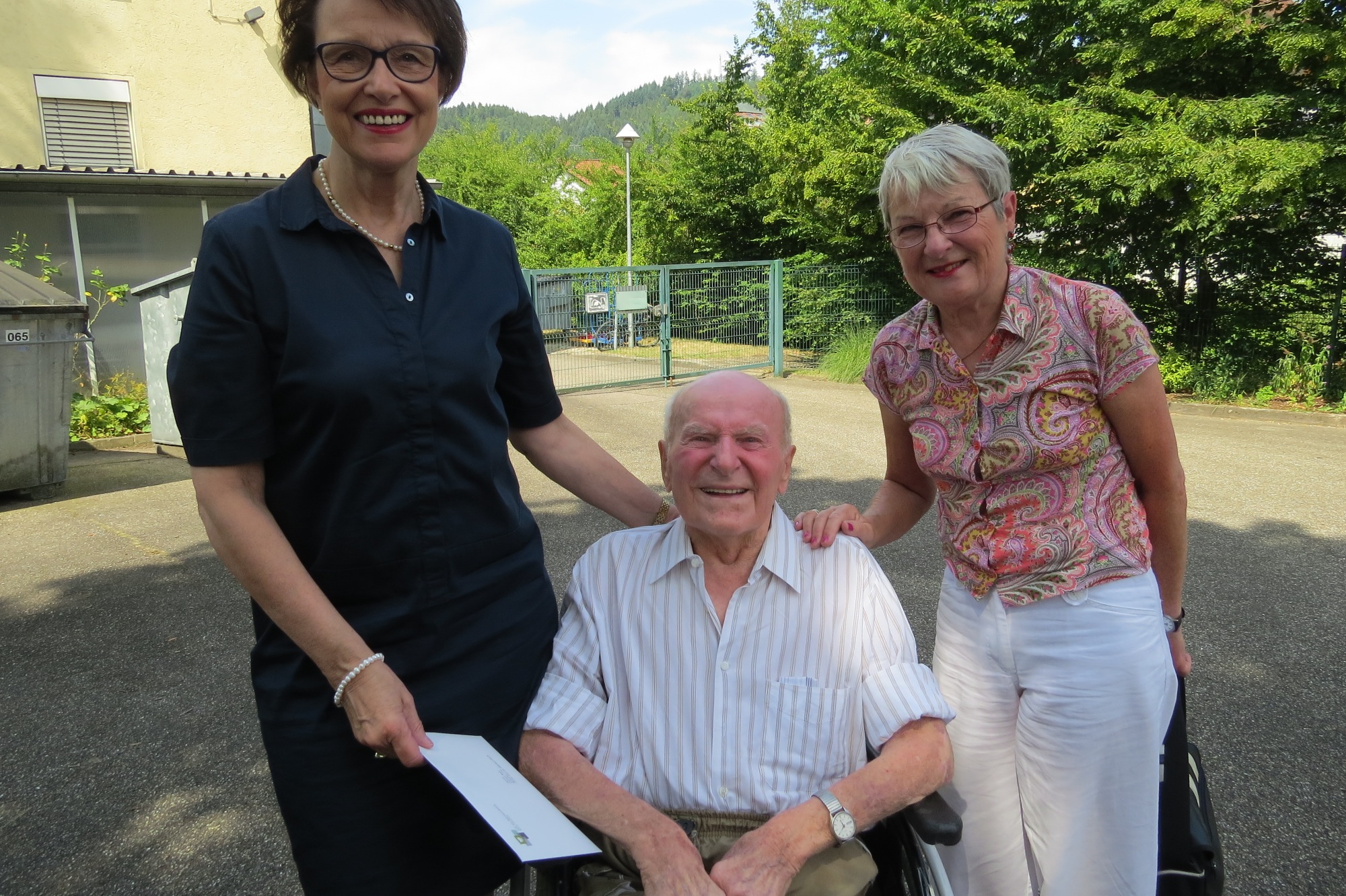 Gleichzeitig feierte die Einrichtung an diesem Tag ihr Sommerfest, zu dem alle Bewohner mit den Gästen im Garten zusammen kamen. Ein schöner Rahmen für die Geburtstagsfeier von Gustav Balz, den traditionellen Geburtstagsgruß für ihn riefen die Bewohner mit den Betreuerinnen gemeinsam aus.