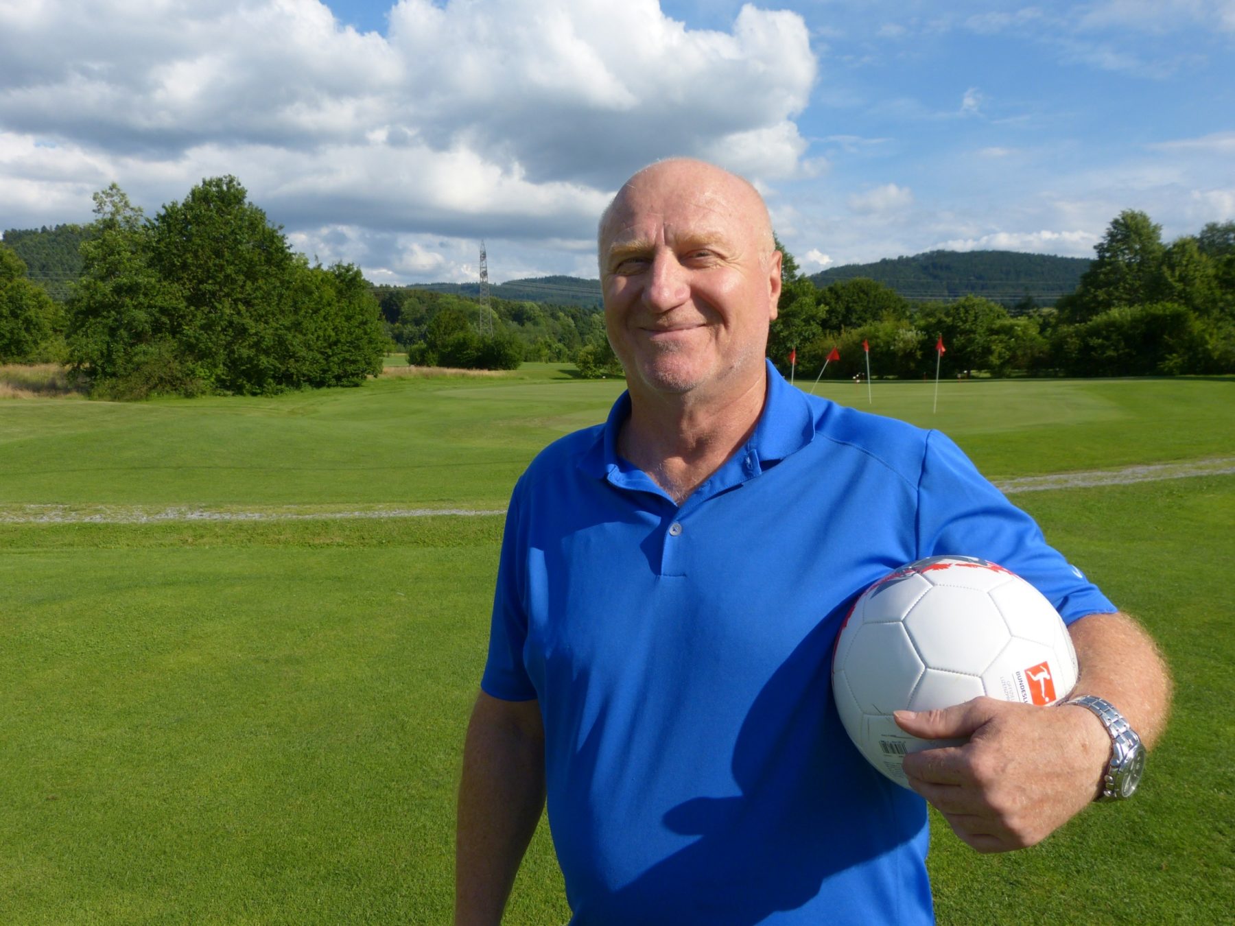 Sorgen um den sorgsam gehüteten Golfplatz muss man sich wegen der Löcher jedoch nicht machen: »Wenn das Turnier vorbei ist, werden die ausgestochenen Grassoden grad wieder reingelegt und alles ist wie vorher.« Das alles erzählt Stefan Kirsch mit einem steten, vorfreudigen Lächeln in den Mundwinkeln, in den Augen. Das erklärt sich spätestens dann, wenn man erfährt, dass er aktiver Fußballer war und über drei Jahrzehnte lang als Fußball-Schiedsrichter fungierte.