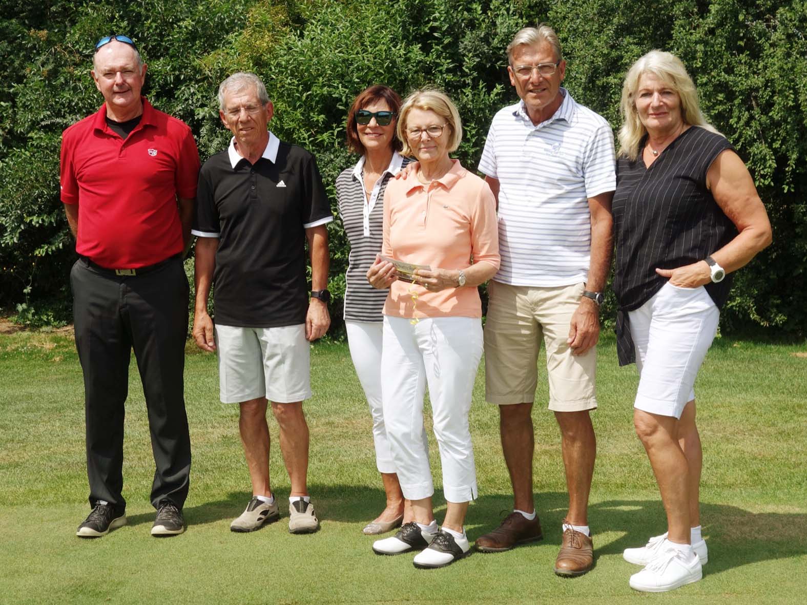 Auf alle Fälle gewinnt das gespielte Turnier mit dieser Sensation an Bedeutung. Die Mixed Clubmeisterschaft, ein Spaßturnier über drei Runden, ging am vergangenen Sonntag bereits in die zweite Runde mit einem Vierer-Auswahl-Drive. Bei dieser entspannten Spielform bilden zwei Golfer ein Team. Beide Spieler schlagen zu Beginn eines Lochs ab und entscheiden dann, mit welchem der beiden Bälle sie abwechselnd weiterspielen, bis sie einlochen. Der andere Ball wird aus dem Spiel genommen. Am besten meistern konnten diese Herausforderung die beiden Siegerteams, Gerhard Langer mit Teampartnerin Gabriele Schley-Spinner in der Bruttowertung und Dr. Günther Kuhlicke mit Ehefrau Carola Kuhlicke in der Nettowertung.