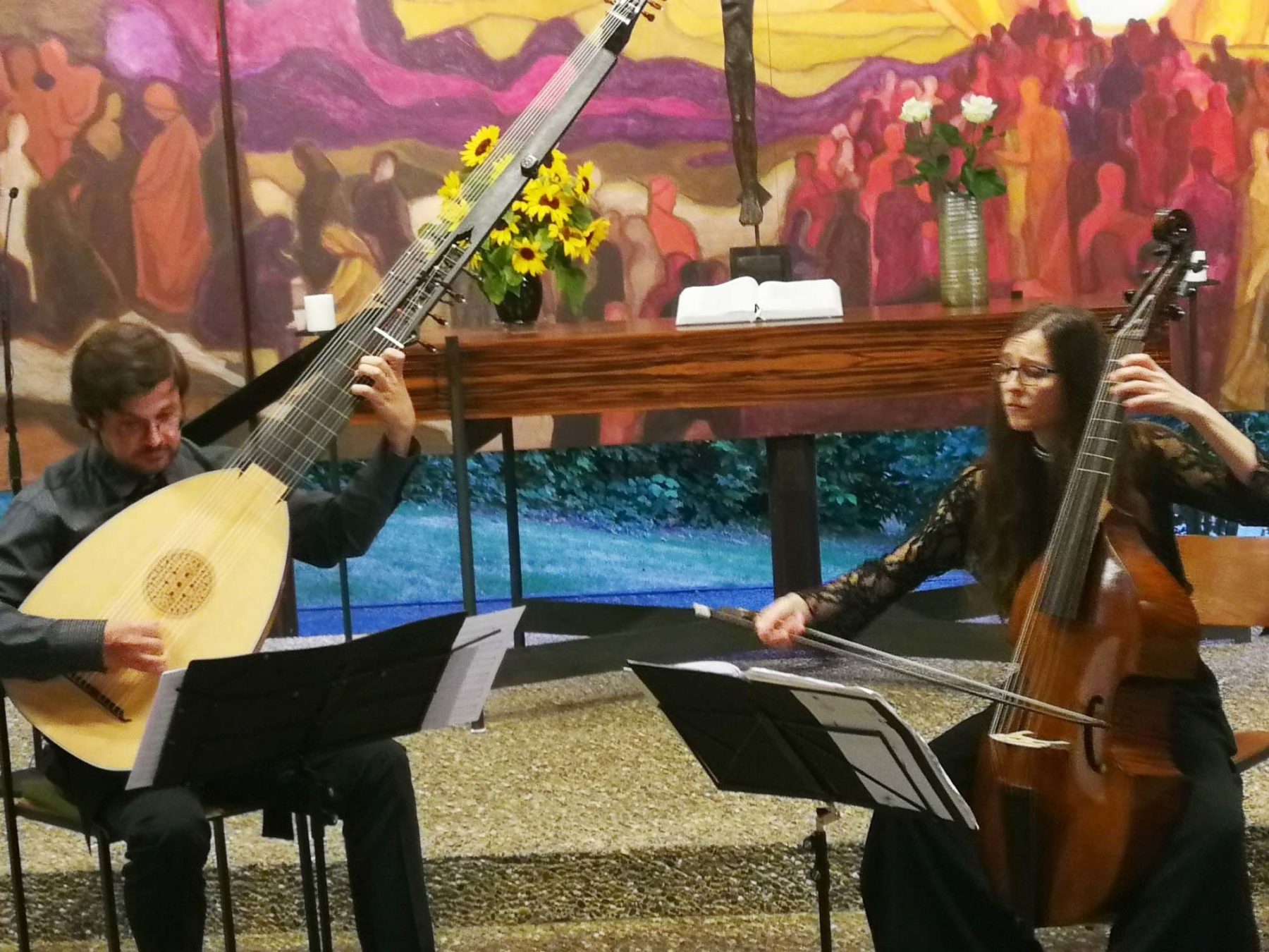 Der gut besuchte Sommermusik-Abend in der evangelischen Kirche zeigte die Vielfalt barocker Kompositionen. Jedes Stück glänzte als musikalisches Juwel. Vom Anfang bis zum Schluss des Konzerts spürte man die Leidenschaft der beiden Musiker für die Epoche des Barock: Anja Engelberg (Viola da Gamba) und Premek Hajek (Theorbe) setzten gänzlich auf die leisen Töne, zauberten filigrane Klanggewebe, die in einer Zeit entstanden, in der häufig Kanonendonner und Marschtrommeln die Menschen in Angst und Schrecken versetzten, in der Musik dagegen das Streben nach Stille und Wohlklang vorherrschte.