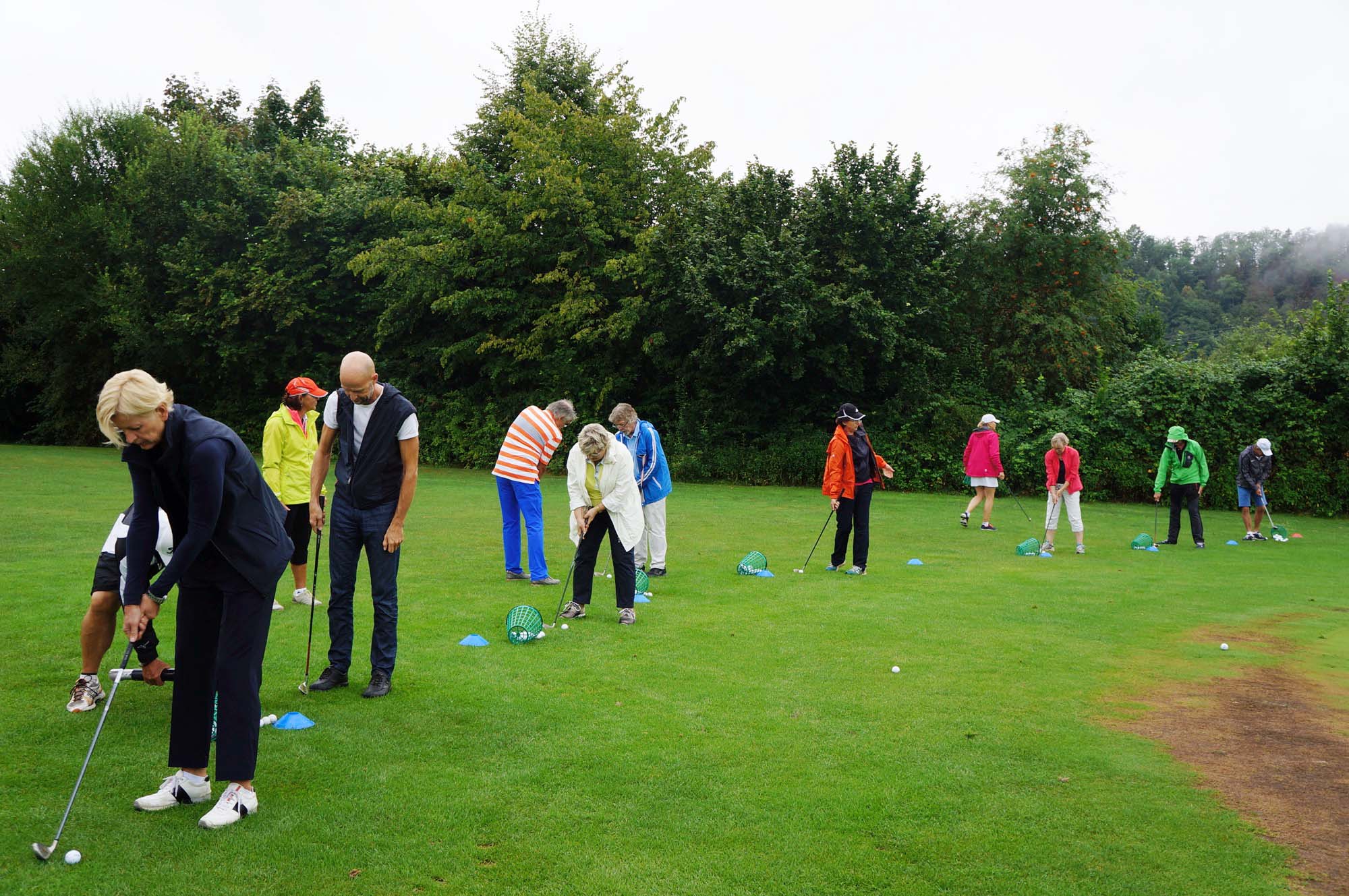 Der Vizepräsident Walter Hildbrand bemerkte schon bei der Begrüßung zufrieden, dass die Schnuppergolfer bekleidungstechnisch für alle Wetterlagen vorgesorgt hatten und versprach ihnen einen vergnüglichen und informativen Nachmittag. Der Trainer des Clubs, PGA Professional Nigel Elder, nahm sich den Interessierten an. Mit viel Humor und technischem Hintergrundwissen erläuterte er die Grundzüge des Golfschwungs. Unterstützt wurde er dabei von vielen Helfern aus den Reihen der Mitglieder, die mit Freude und Enthusiasmus ihren geliebten Sport den Neulingen näherbrachten. Den Teilnehmern wurde in kurzer Zeit bewusst, dass Golf nicht nur Sport, sondern auch spielerisches Vergnügen mit viel Bewegung und Entspannung in der freien Natur ist und keine Altersgrenzen kennt. Der Einstieg ist viel leichter als allgemein angenommen wird. Auch galt es, den Teilnehmern Einblicke in das Clubleben zu geben und auch die vielen Fragen zu beantworten, insbesondere was zu den Voraussetzungen für eine Spielberechtigung und Mitgliedschaft alles gehört. Als man sich am späten Nachmittag in geselliger Runde im Clublokal wiederfand, wurden schließlich zum Abschluss unter den Teilnehmern noch fünf Gewinner ermittelt, die einen Schnuppergolfkurs gewonnen haben. Das Einsteigerpaket zum Preis von 19 Euro ist übrigens jederzeit buchbar und beinhaltet zwei Stunden Golferlebnis auf den Übungsbahnen und dem Platz, und wird schon mit Kleingruppen ab vier Personen unter Anleitung des Trainers durchgeführt.