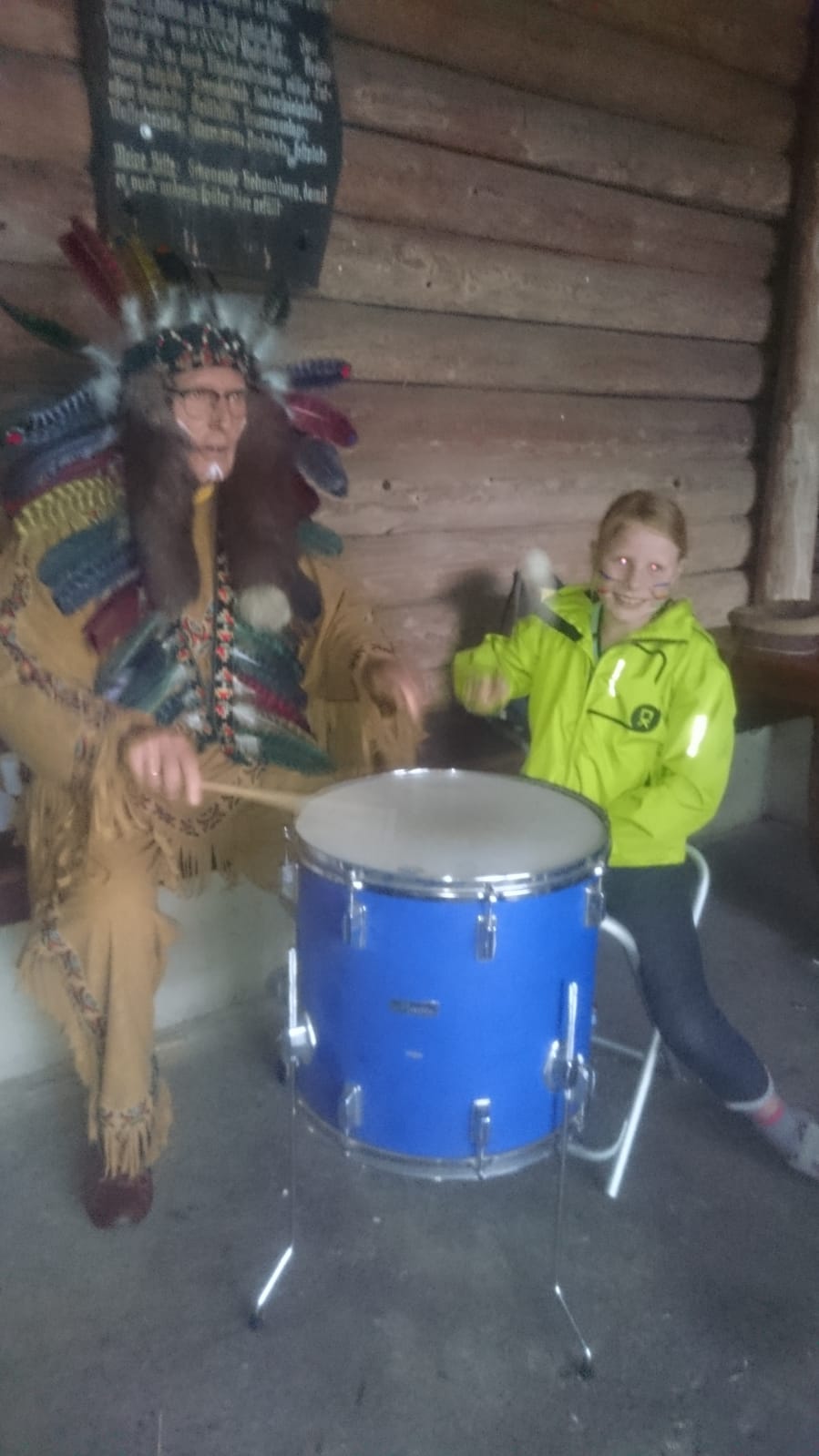 Foto: VereinDie »Indianer« brachten den Kindern die Indianerkultur näher durch Tanz, selbstgebastelten Kopfschmuck, Halsketten und Kriegsbemalung. Selbstverständlich wurden auch Geschichten erzählt. Gut ausgerüstet rief die Trommel zum Elemente-Tanz.